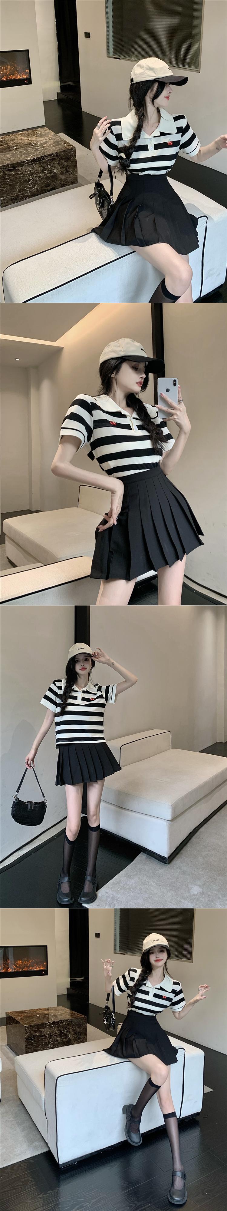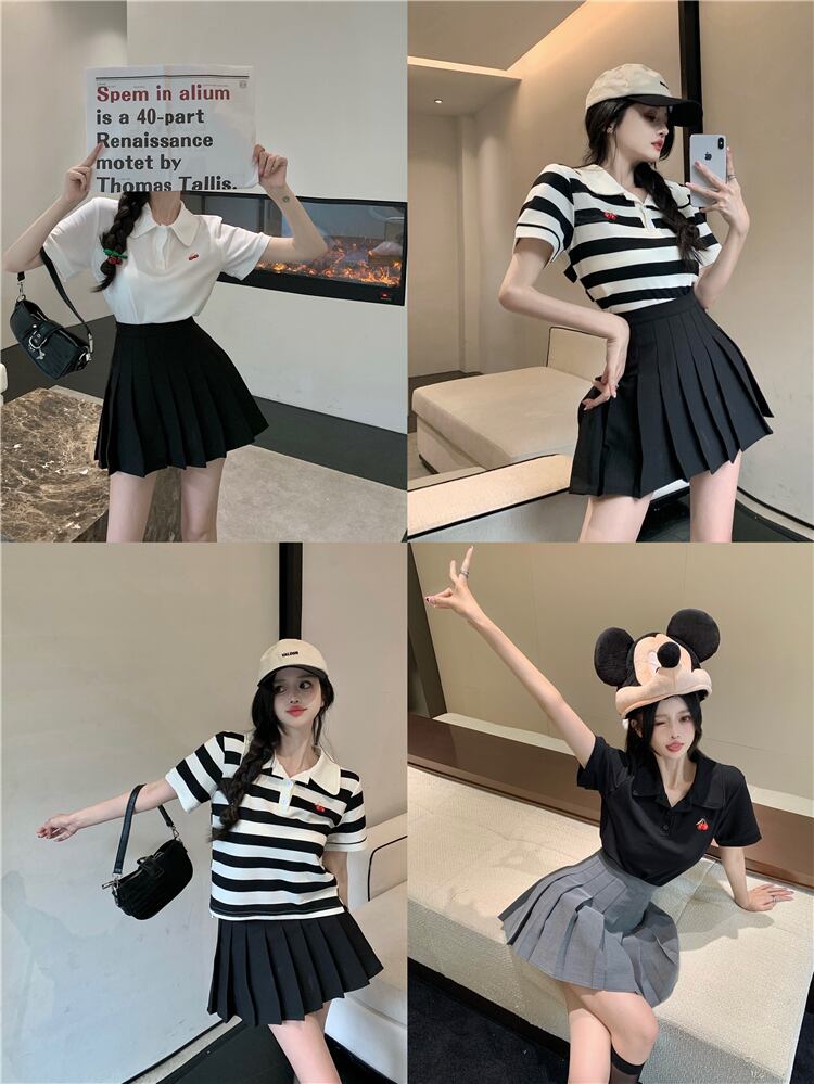 色:ホワイトT-shirtsinglepiece,ブラックt-shirtsinglepiece,ストライプdT-shirtsinglepiece,ブラックpleatedスカート,グレーpleatedスカート