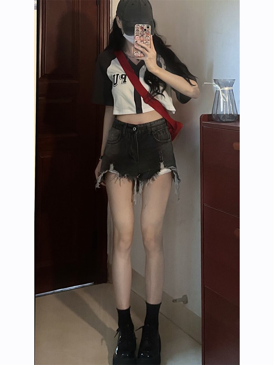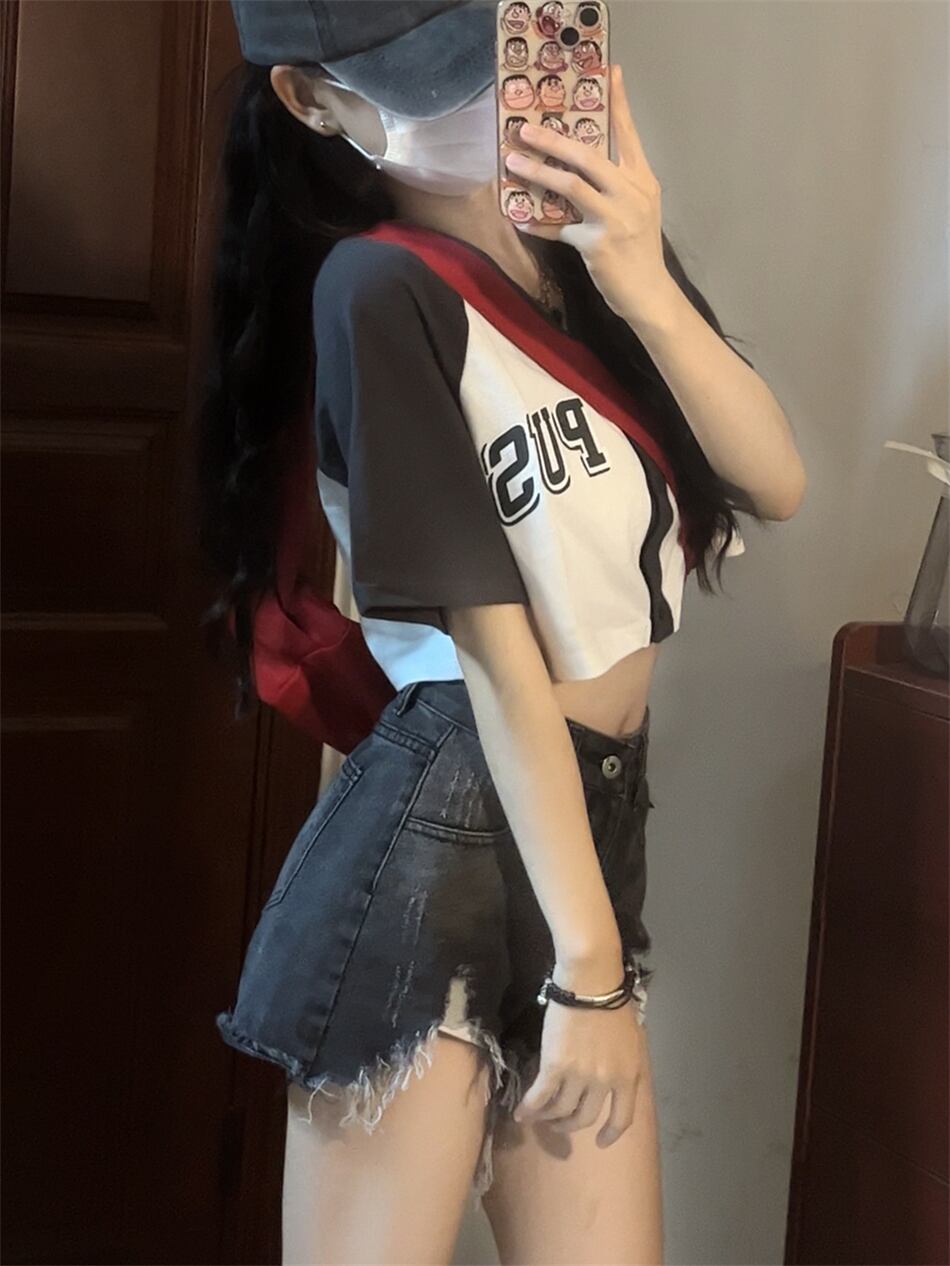 Hot chic letter printing contrast color short-sleeved T-shirt women's summer 2022 new bm wind thin short top trendy ショート サマー 夏物 Tシャツ 0921973108542718