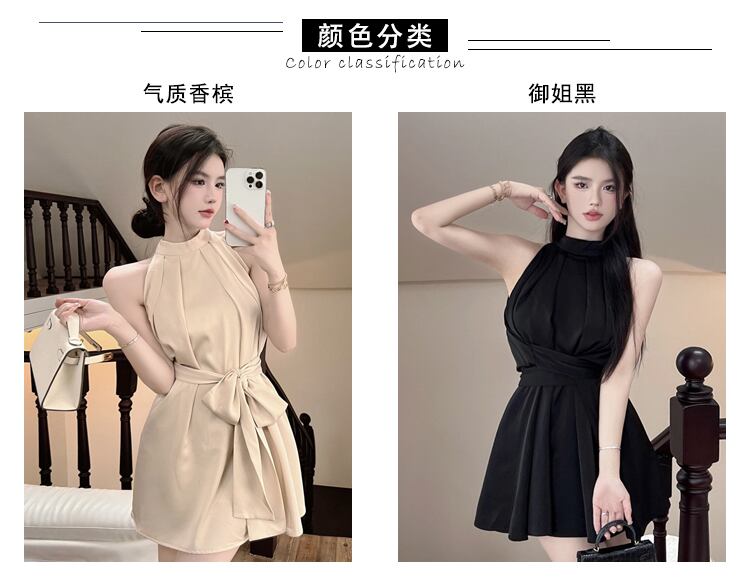 -quality satin sleeveless dress women's summer 2022 new French chic lace waist slim A-line skirt レース サマー 夏物 ノースリーブ スカート Aライン サテン スリム 0921955196901817