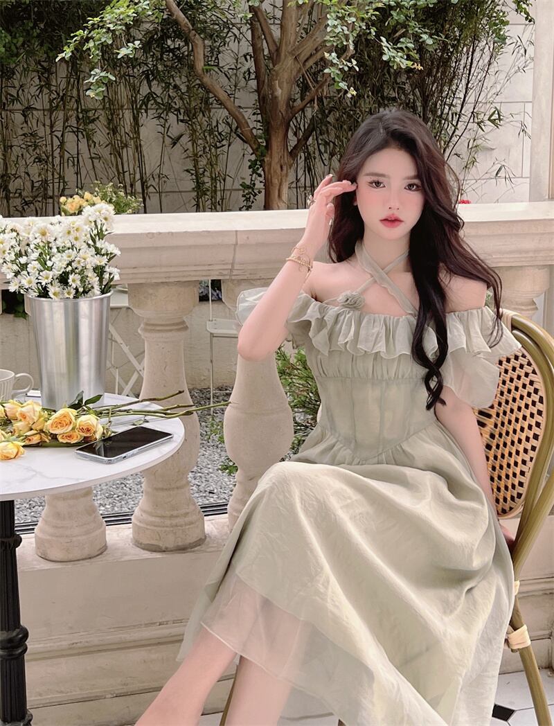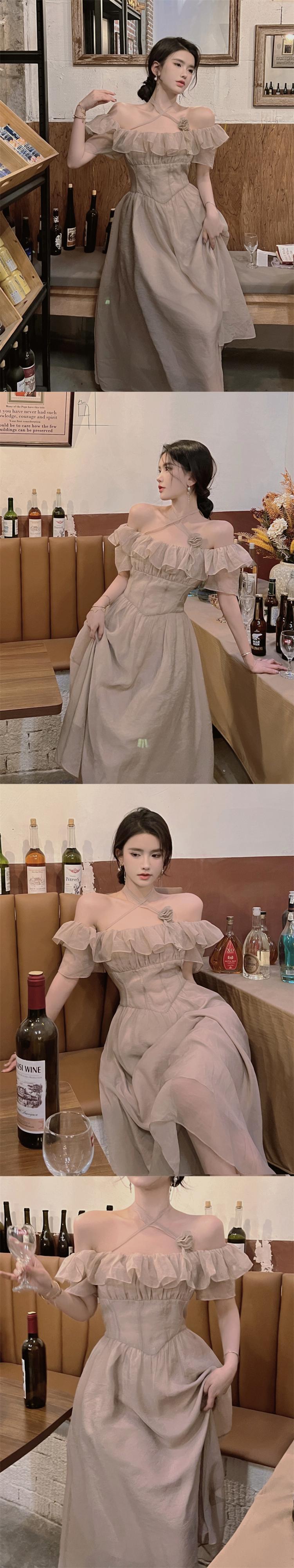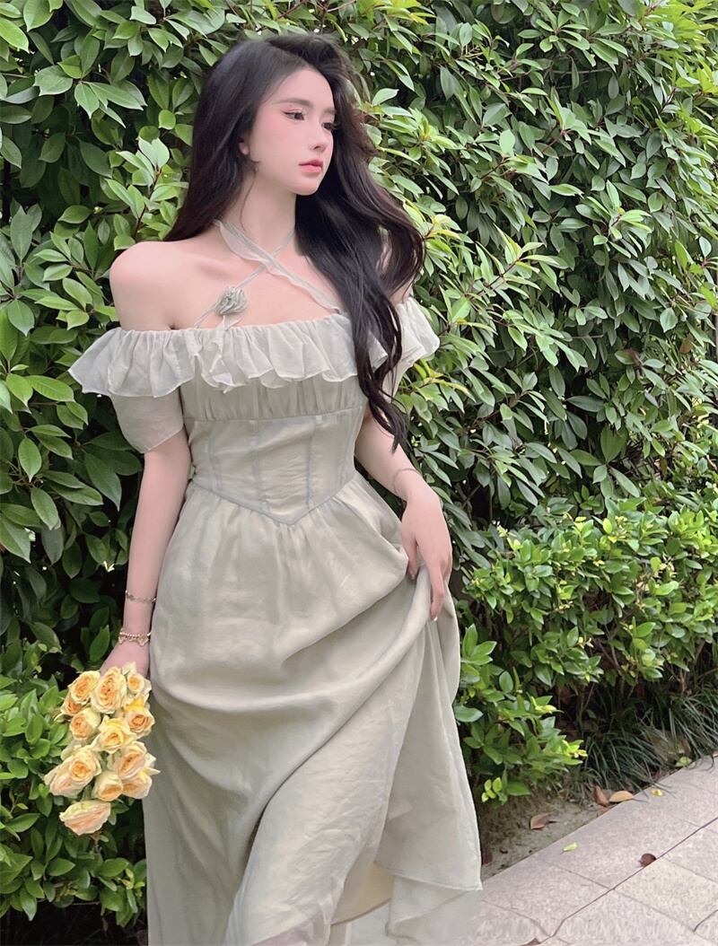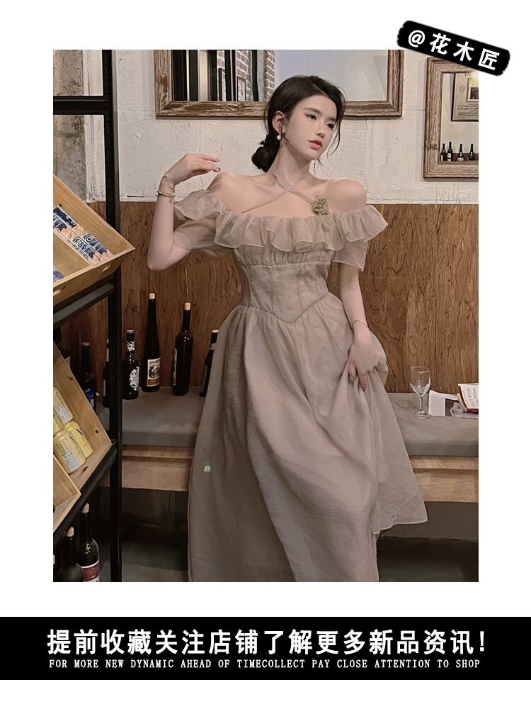 -quality super fairy three-dimensional flower hanging neck dress women's summer 2022 new pure desire to show off the shoulders waist A-line skirt サマー 夏物 スカート Aライン ピュア フラワーデザイン 0921980915153666