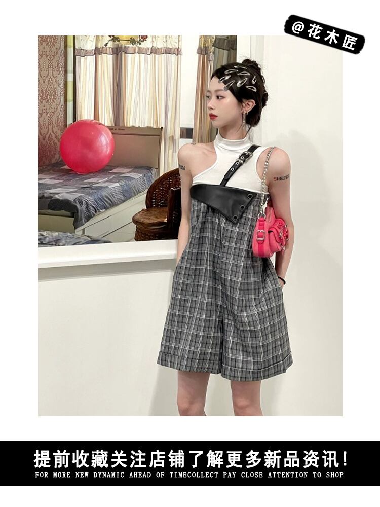 sense overalls plaid jumpsuit women's summer 2022 new net red small loose wide-leg shorts tide レッド サマー 夏物 ショーツ ブルマー 0921989745842517