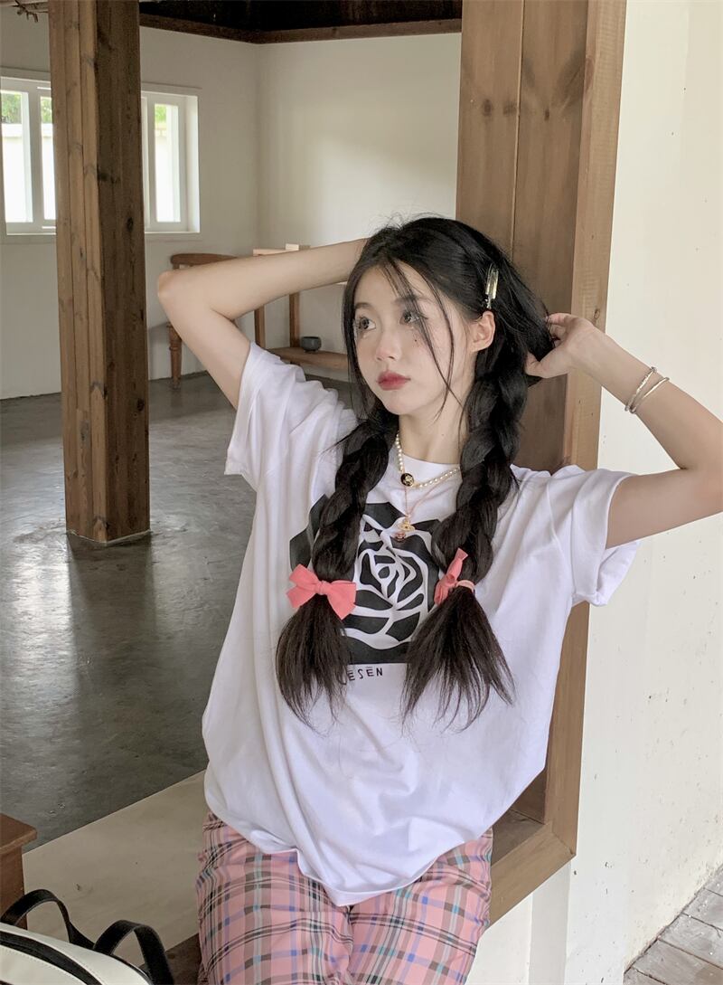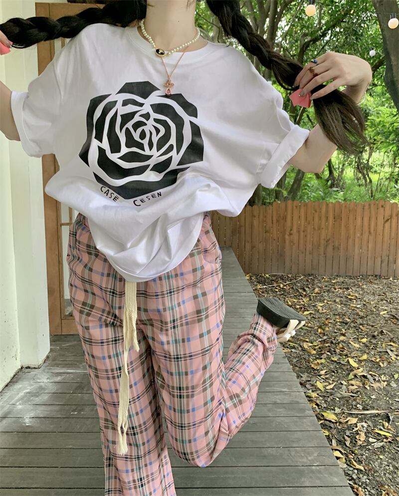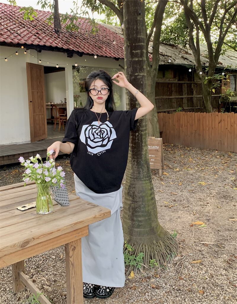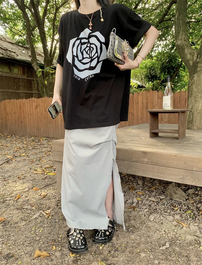 Net red chic flower print short-sleeved T-shirt women's summer 2022 new version chic loose mid-length top レッド サマー 夏物 Tシャツ フラワーデザイン 0921932106974923