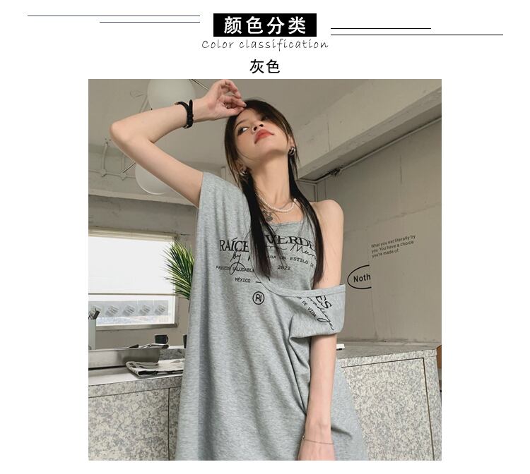 sense loose gray sleeveless T-shirt women's summer 2022 new fashion letter mid-length chic top trendy サマー 夏物 ノースリーブ Tシャツ 0921973748971296