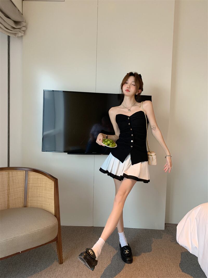 -quality black tube top vest women's summer 2022 new design sense single-breasted shirt inside and outside ブラック サマー 夏物 0921952991903012