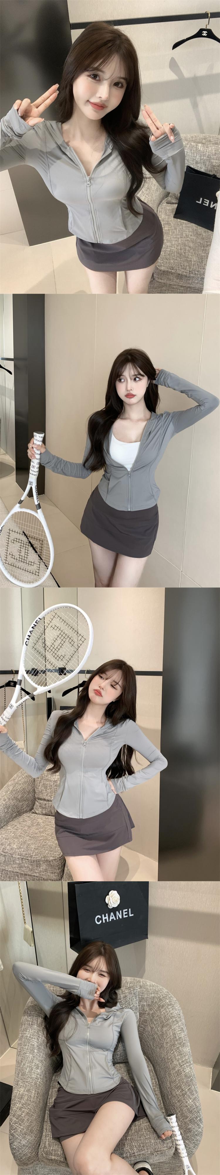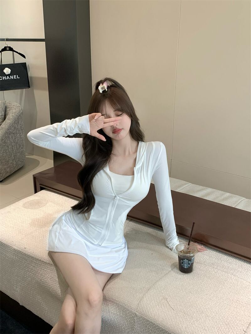 Net red casual thin section hooded long-sleeved sunscreen jacket women's summer 2022 new all-match slim solid color top trend ロング レッド カジュアル サマー 夏物 スリム ソリッドカラー 092195149889931