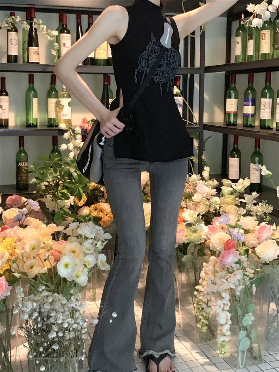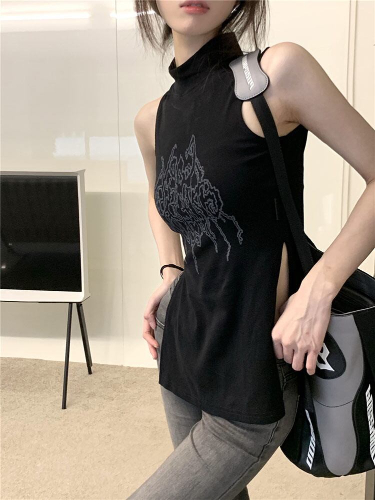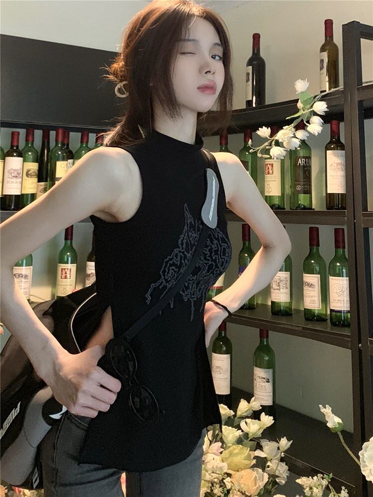 Spice Girls Chic Print Vest Women's Summer 2022 Print Slim Fit Slim Slit Sleeveless Top サマー 夏物 ノースリーブ スリム 0921959087395581