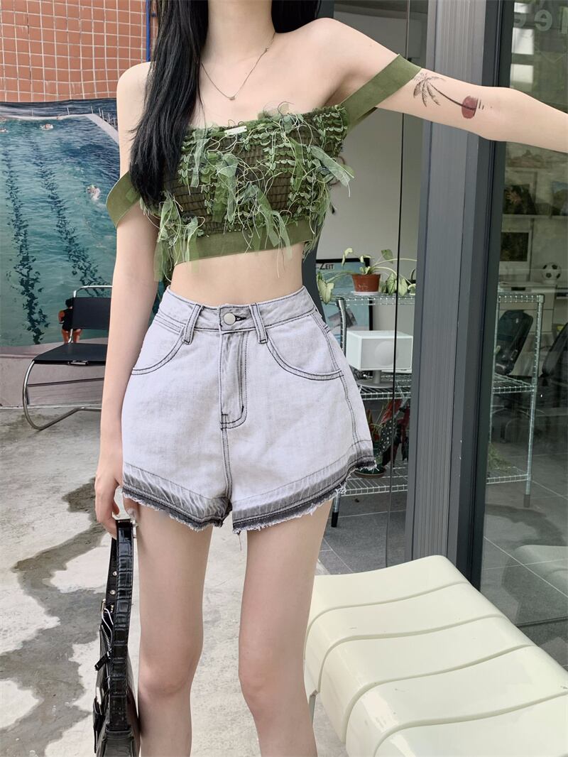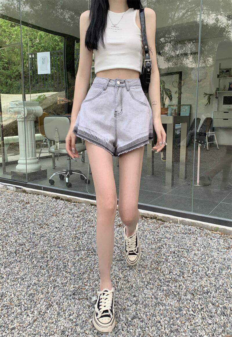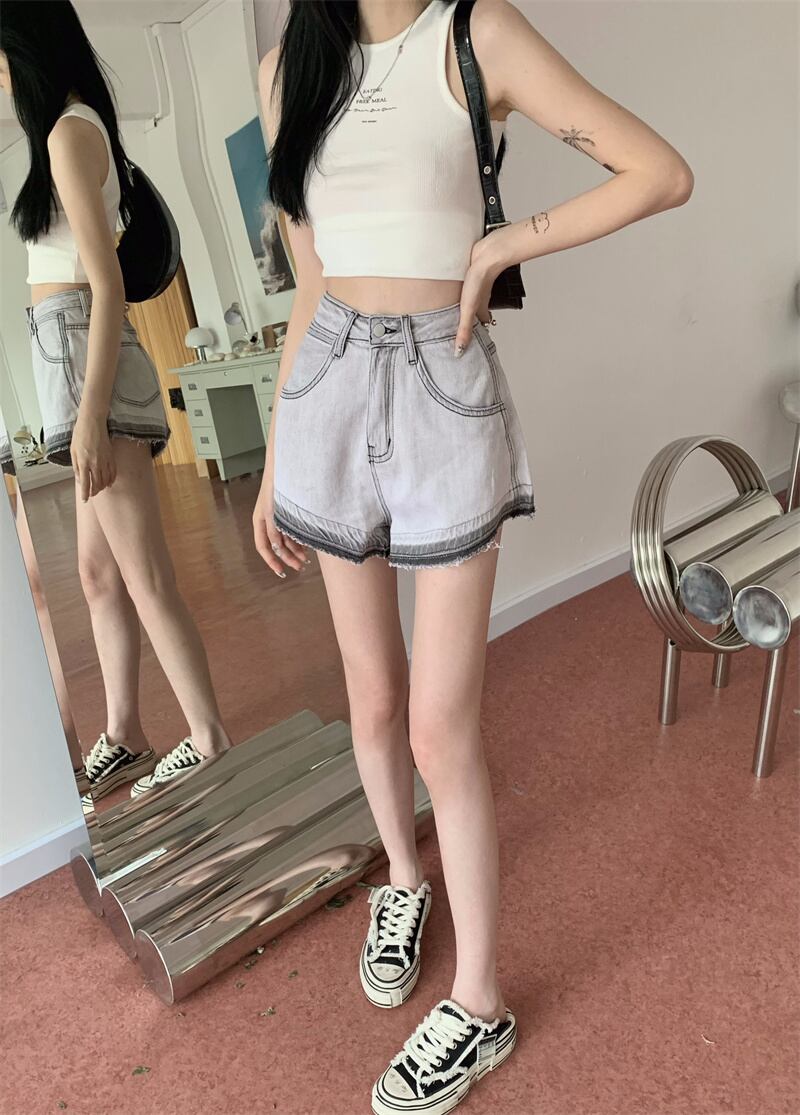 sense contrast color raw edge denim shorts women's summer 2022 new loose wide-leg pants all-match high-waist pants trend サマー 夏物 ショーツ ブルマー 0921998519654491