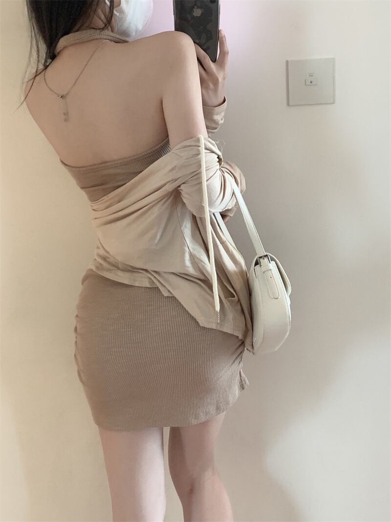 Pure desire wind halter neck solid color pleated dress women's summer 2022 new slim fit and chic hip skirt プリーツ サマー 夏物 スカート スリム ソリッドカラー 0921973317247427