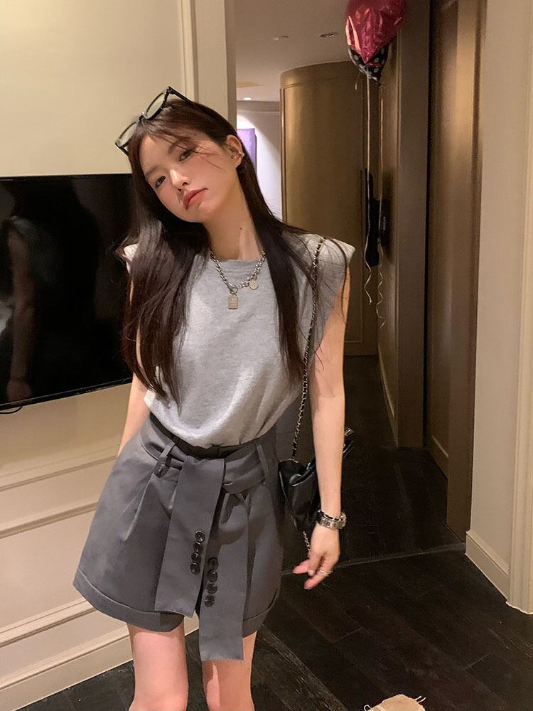 sense chic shoulder pad sleeveless T-shirt women's summer 2022 new version fashion temperament thin top サマー 夏物 ノースリーブ Tシャツ 0921922247733381