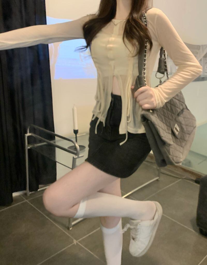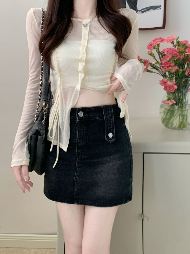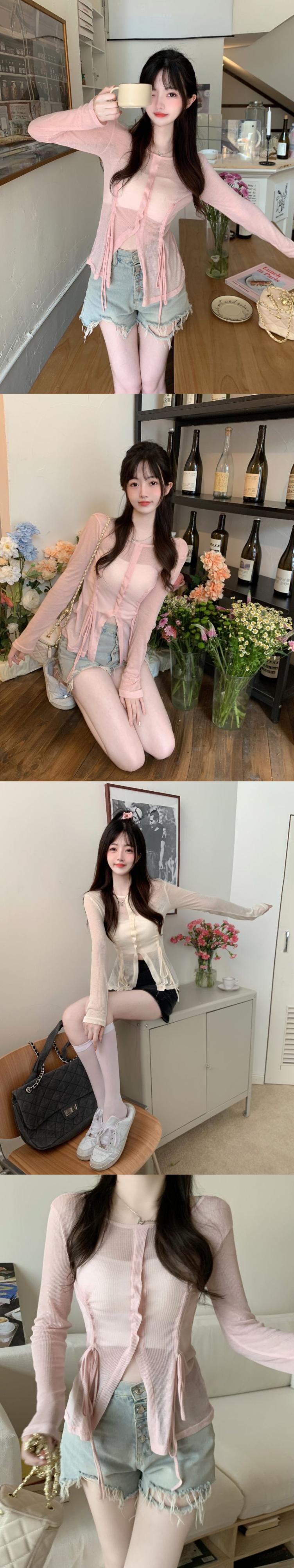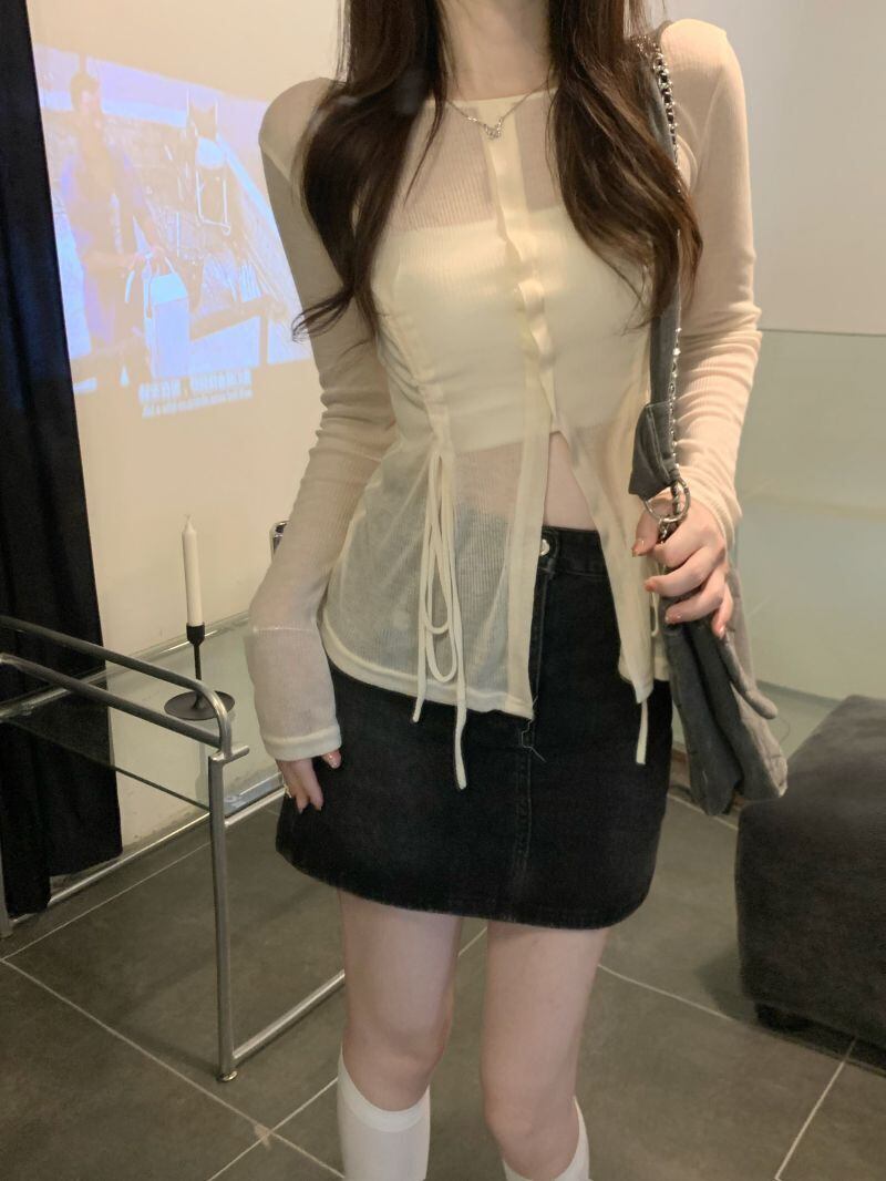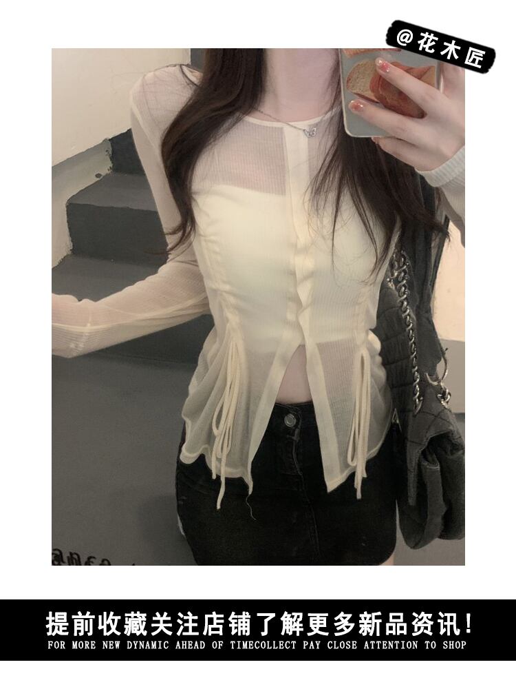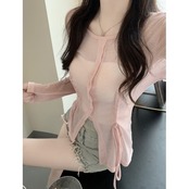 sense slit straps sunscreen long-sleeved T-shirt women's summer 2022 new temperament slim slim top ロング サマー 夏物 スリム Tシャツ 0921988234325476