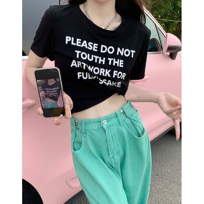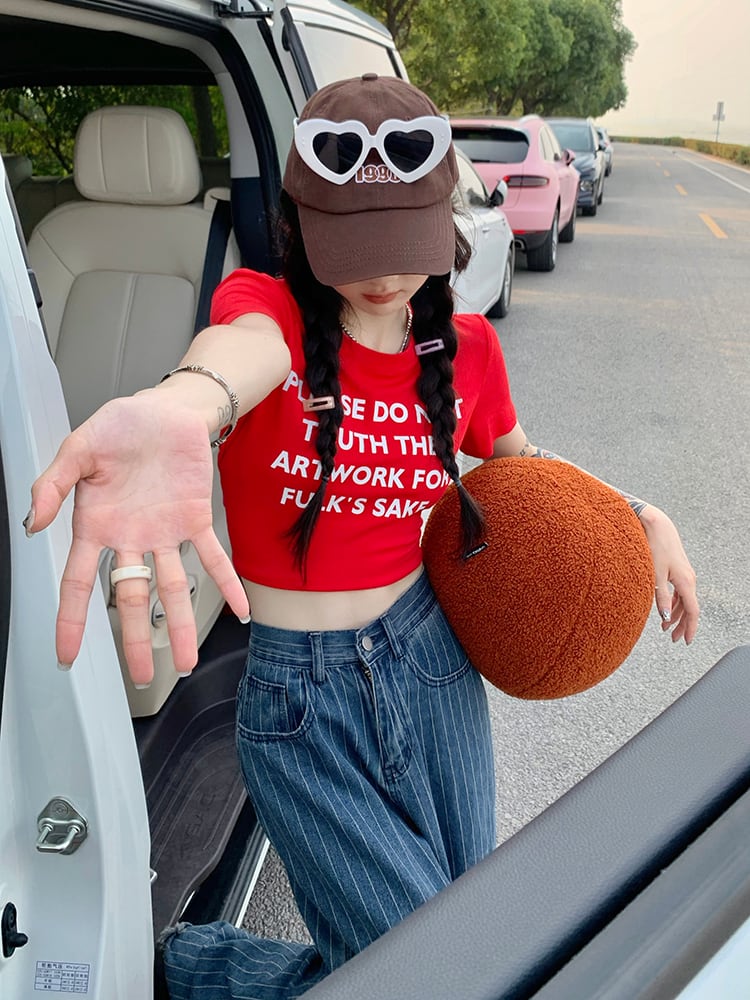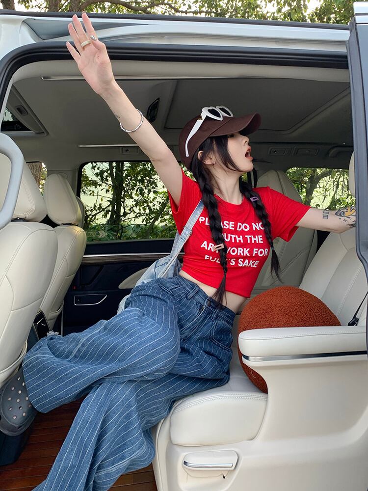 Red short-sleeved T-shirt women's summer 2022 new design sense of small letters slim and chic short top ins tide ショート レッド サマー 夏物 スリム Tシャツ 0921988537013658