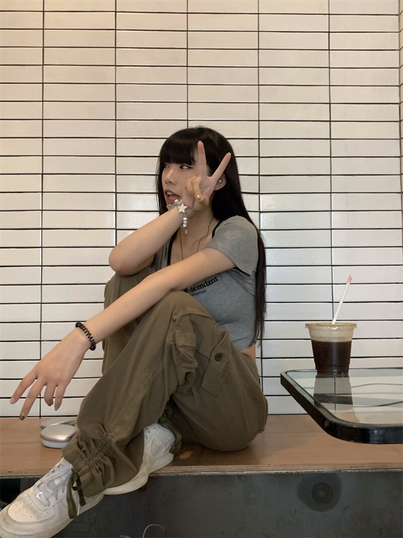 American square collar front shoulder short-sleeved T-shirt women's summer 2022 new letter slim gray short top ショート サマー 夏物 スリム Tシャツ スクウェア 0921964649427063