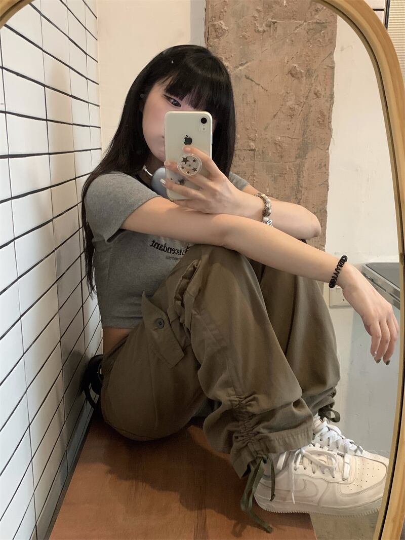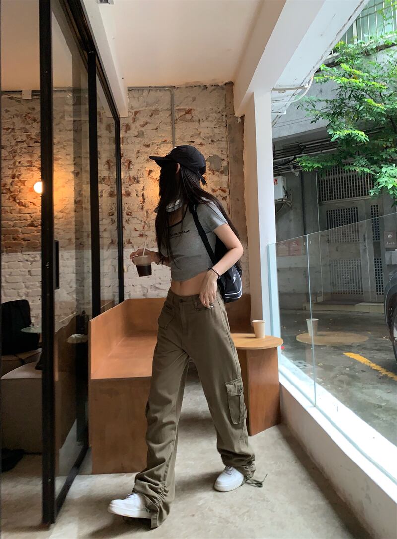 色:グレーShortTSinglePiece,pocketstraighttrousers