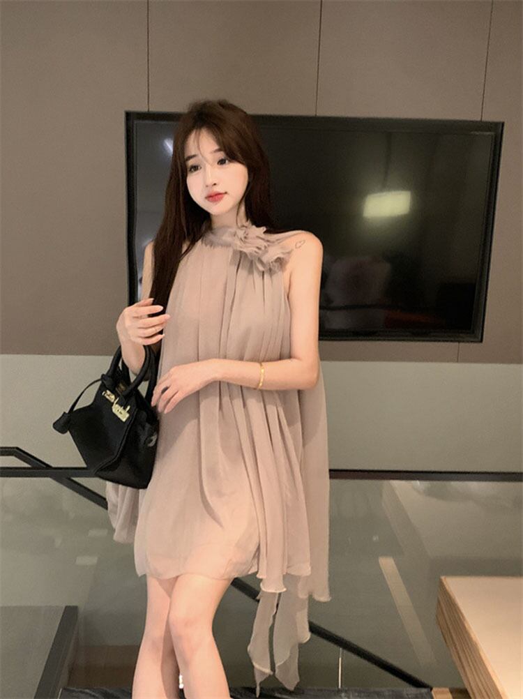 -quality temperament bow tie flower halter dress women's summer 2022 new loose irregular mesh a-line skirt リボン サマー 夏物 メッシュ スカート Aライン フラワーデザイン 0921998713570418