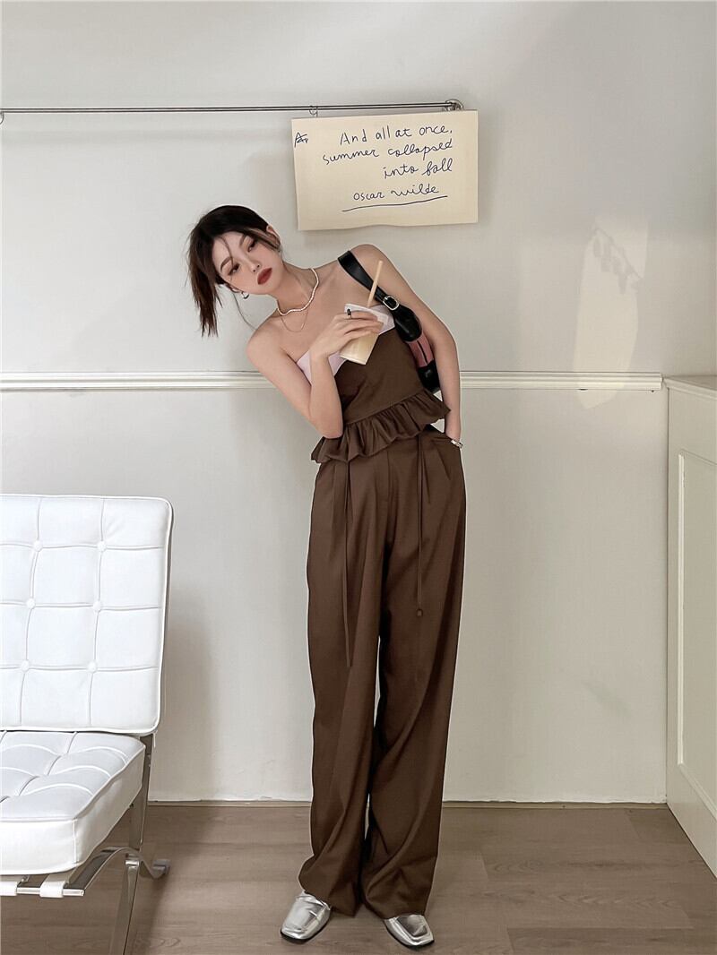 -end fashion suit women's summer 2022 new western style contrast color tube top top wide-leg pants two-piece set サマー 夏物 0921917213500635