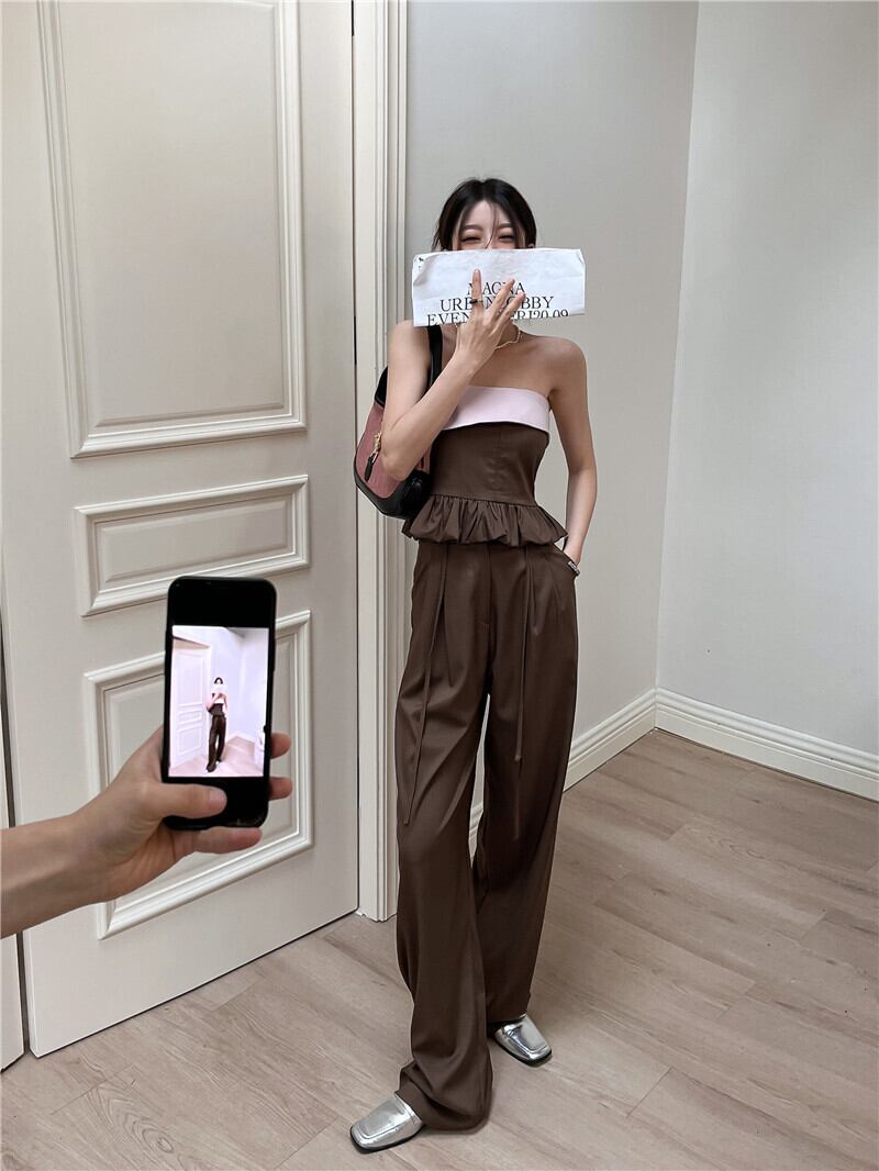 色:モカ色tubeトップsinglepiece,ブラックtubeトップsinglepiece,モカ色trousersワン-piece,ブラックtrousers
