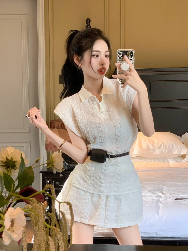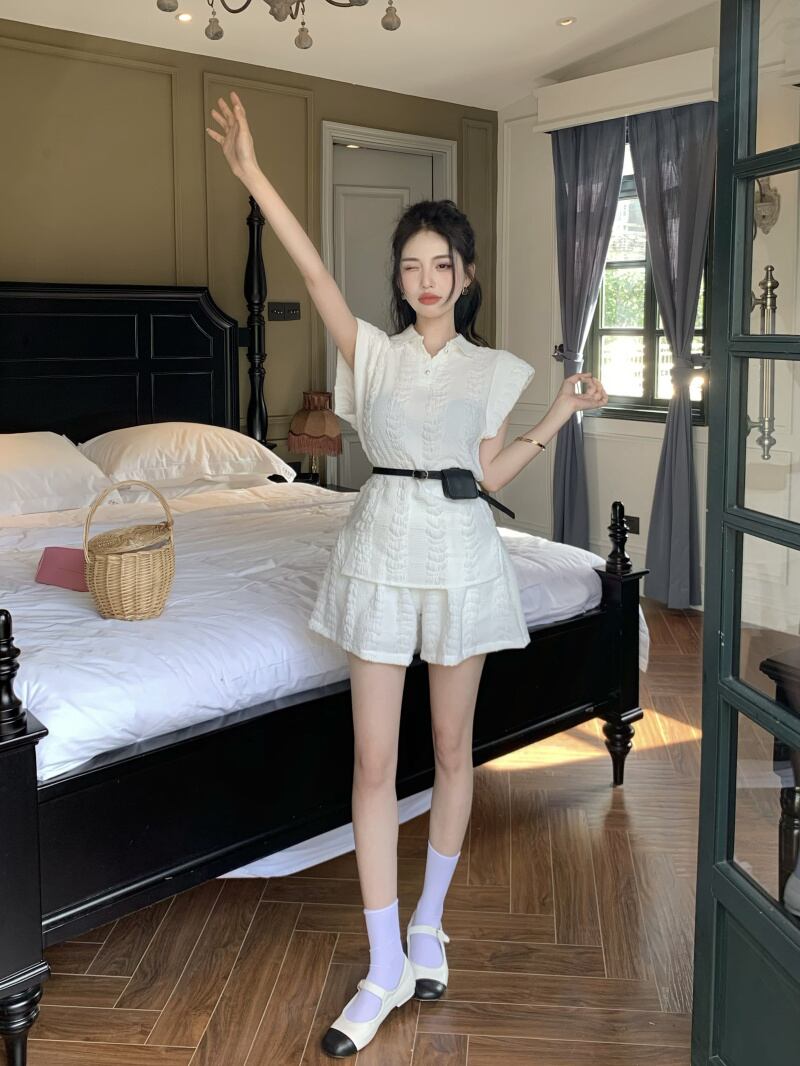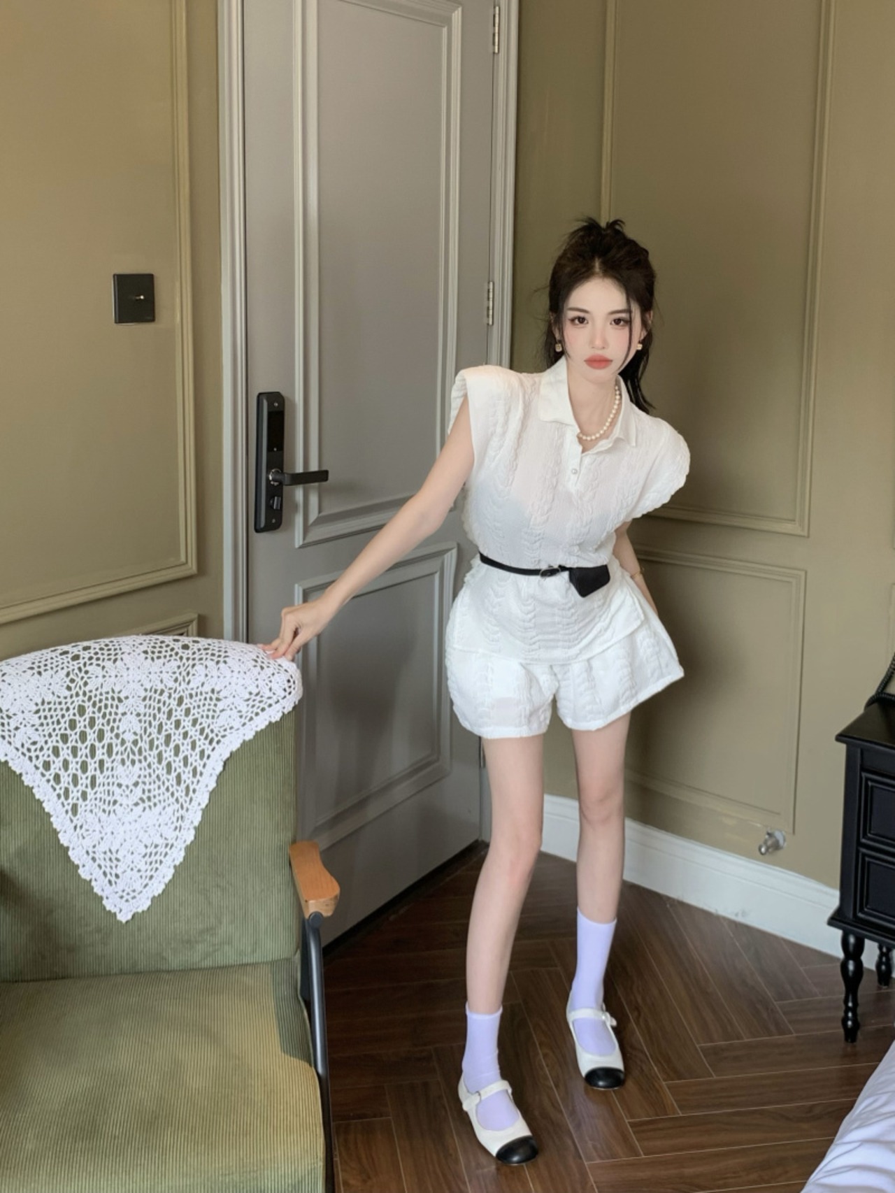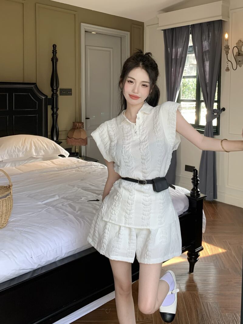 French fashion suit female summer 2022 new western style texture top loose wide-leg shorts two-piece tide サマー 夏物 ショーツ ブルマー 0921917418630125