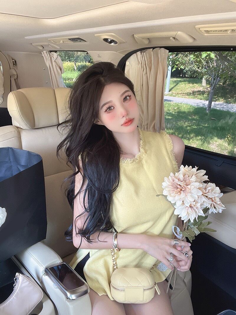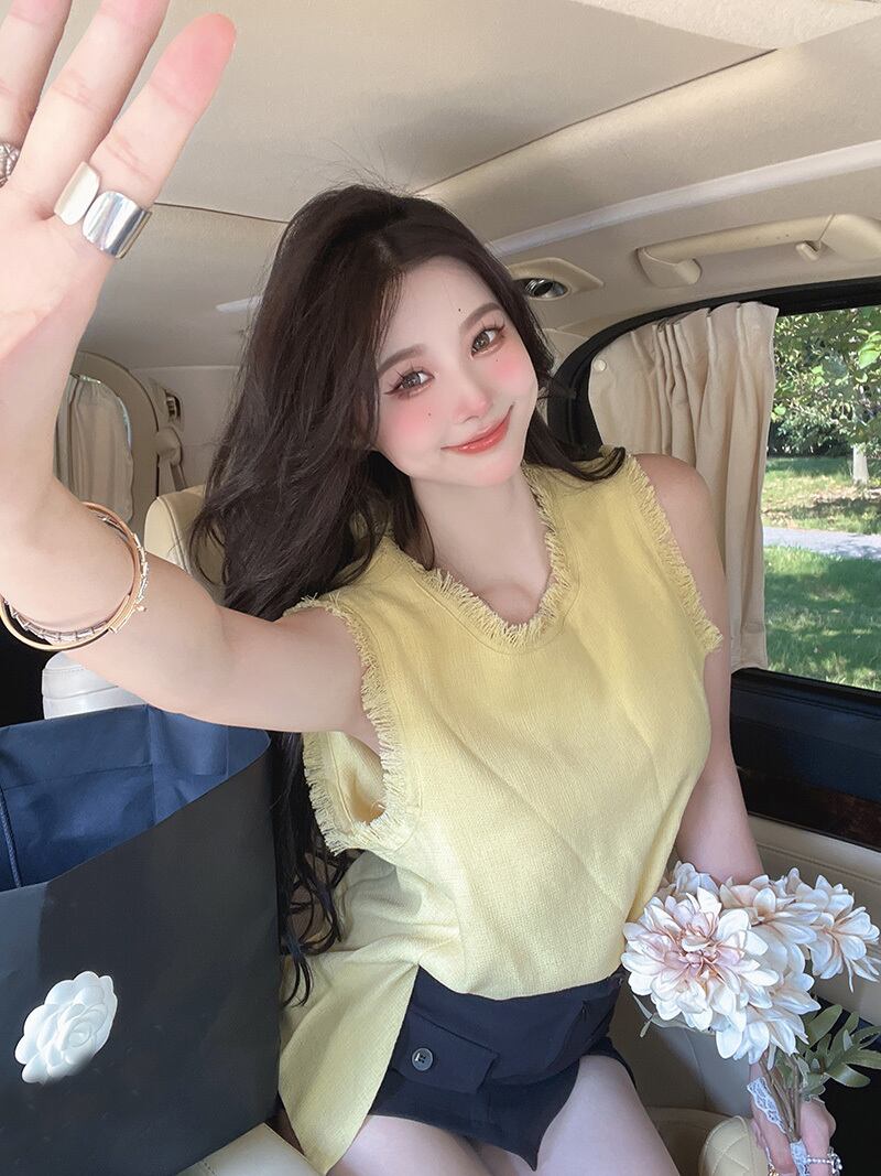 Xiaoxiangfeng chic raw edge yellow sleeveless vest women's summer 2022 new design sense of temperament was thin vest tide サマー 夏物 ノースリーブ 0921919303651730