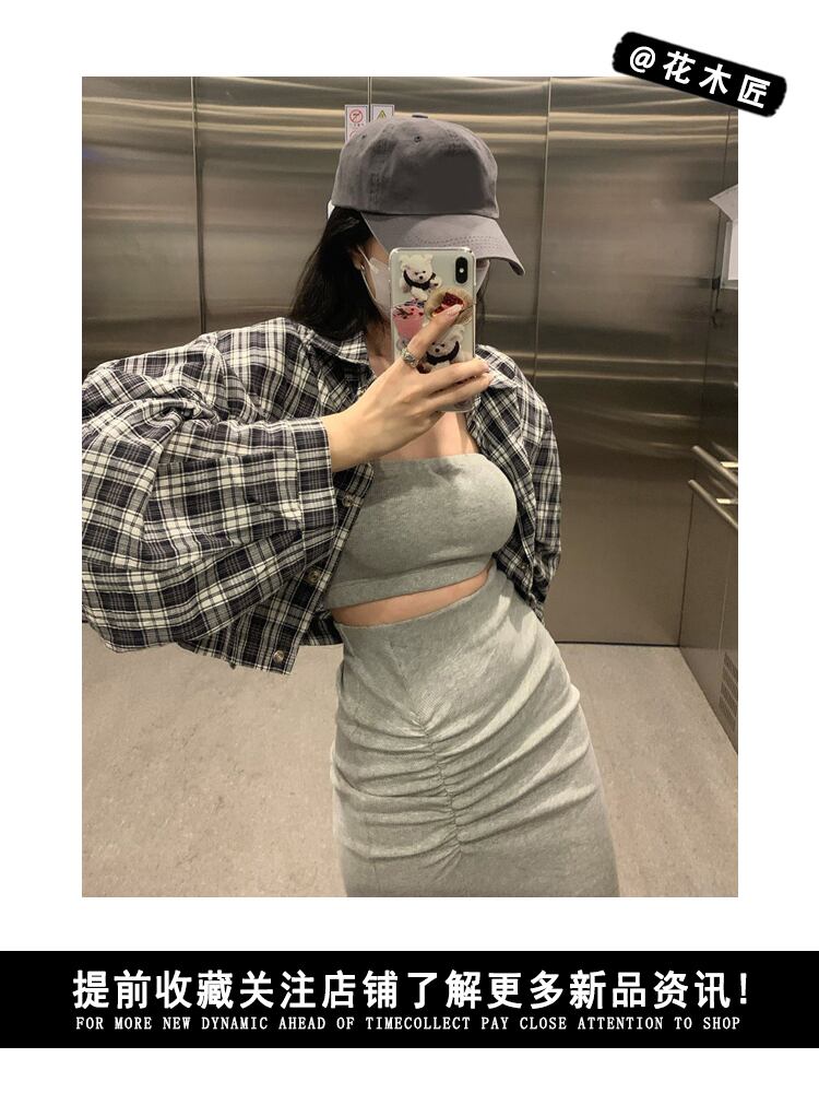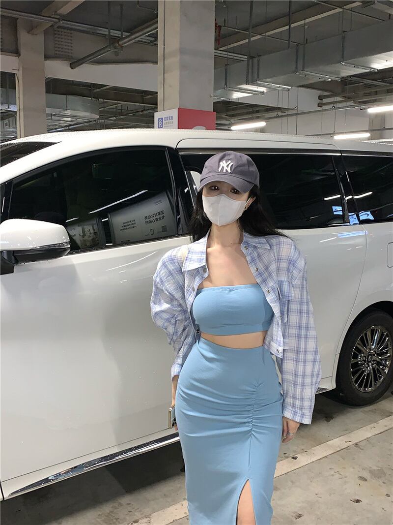 sense chic sunscreen long-sleeved plaid shirt women's summer 2022 new version all-match loose short top ショート ロング サマー 夏物 0921992848586412