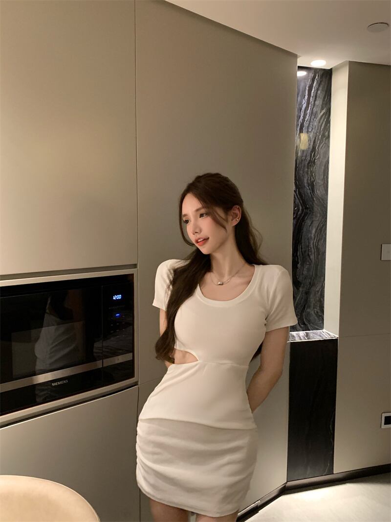 Sexy hollowed-out white short-sleeved dress women's summer 2022 new slim pleated waist slimming hip skirt ホワイト プリーツ サマー 夏物 スカート スリム 0921982609369056