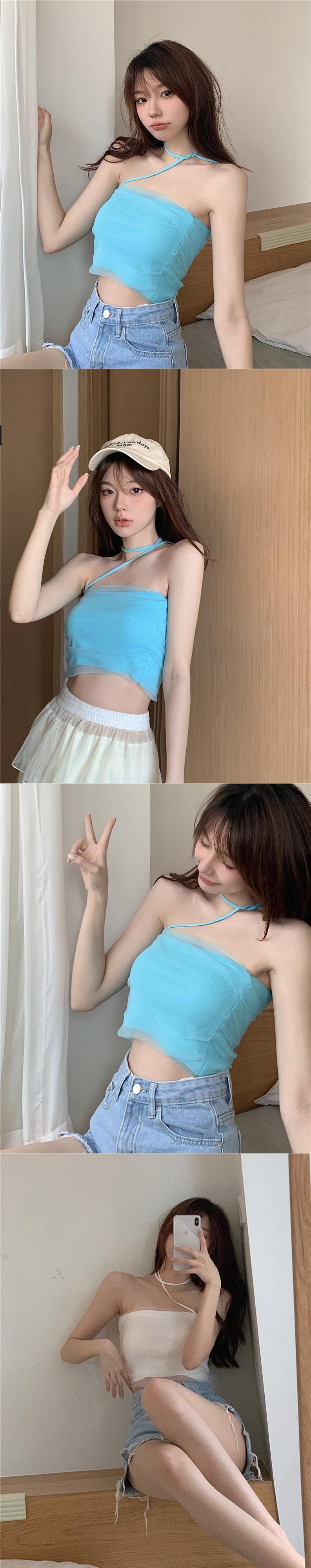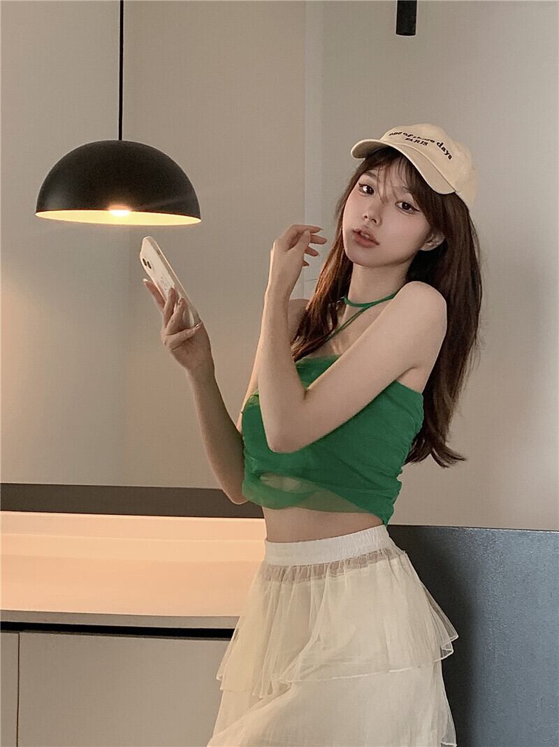 ピュアデザイアウィンドグリーンメッシュホルターネックベストレディースインナーウェア2022年夏新作シックで美しいバックスリムショートトップ サマー 夏物 0921923114414400