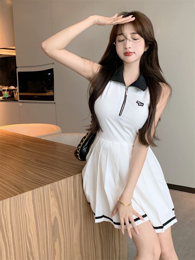 Pure desire to hit the color polo collar sleeveless vest dress women's summer 2022 new college style waist pleated skirt プリーツ サマー 夏物 ノースリーブ スカート 0921911800221914