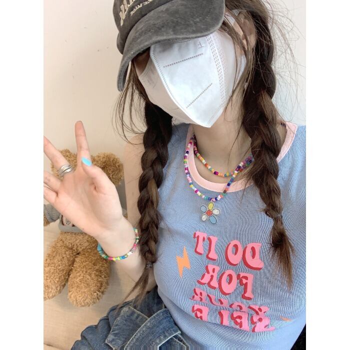 Sweet and spicy letter print sports vest women's summer 2022 new style with a chic slim short top outer wear ショート 大人ガーリー スウィート キュート カジュアル サマー 夏物 スリム 0921929608871130