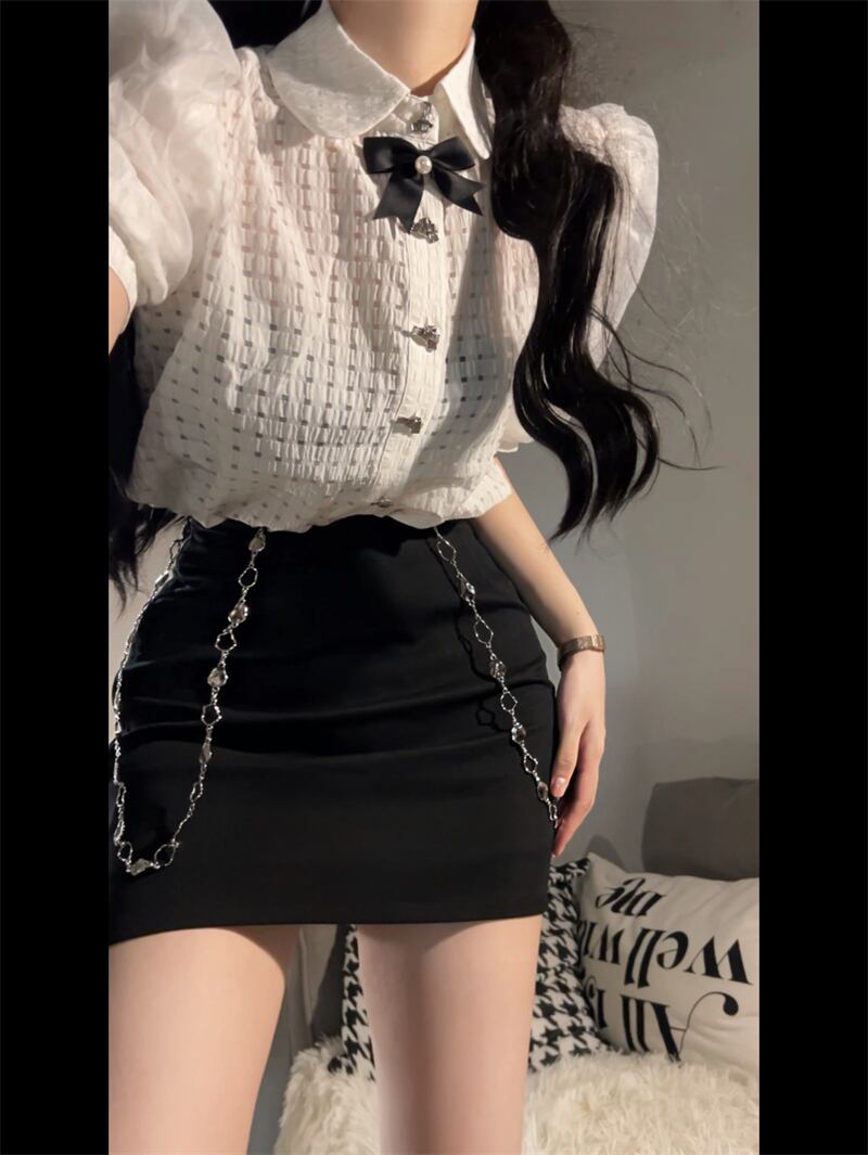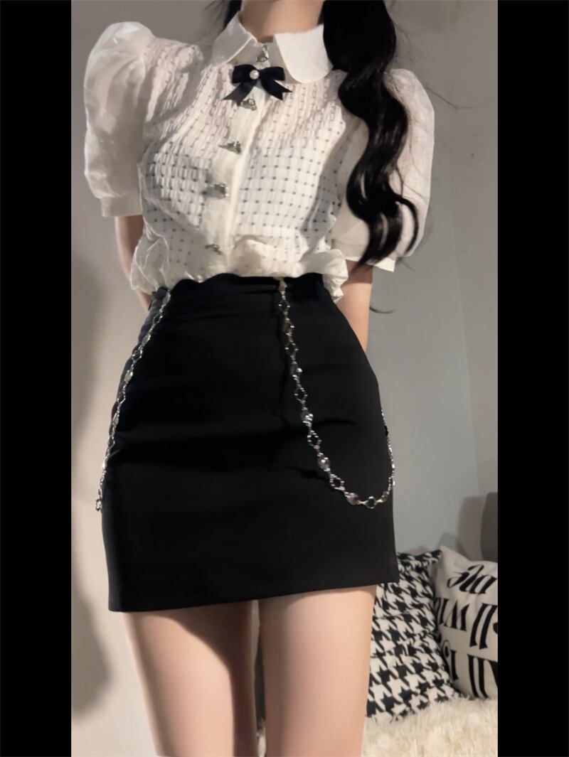 Celebrity style chic heavy industry suit skirt female summer 2022 new temperament puff sleeve shirt bag hip skirt two-piece set サマー 夏物 スカート 0921976046082739