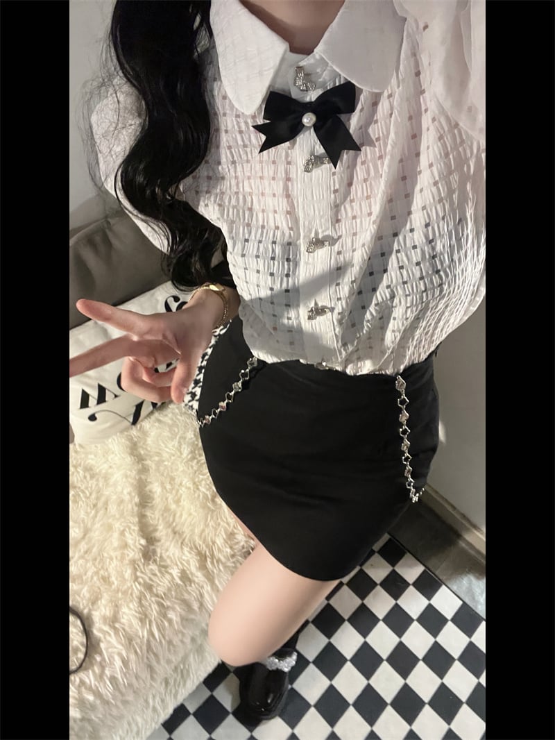 色:Singlepieceofホワイトshirt,ワン-pieceヒップスカート,accessorychain