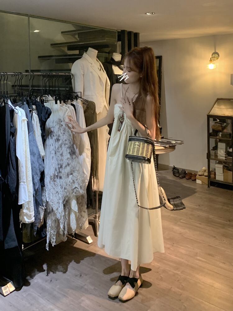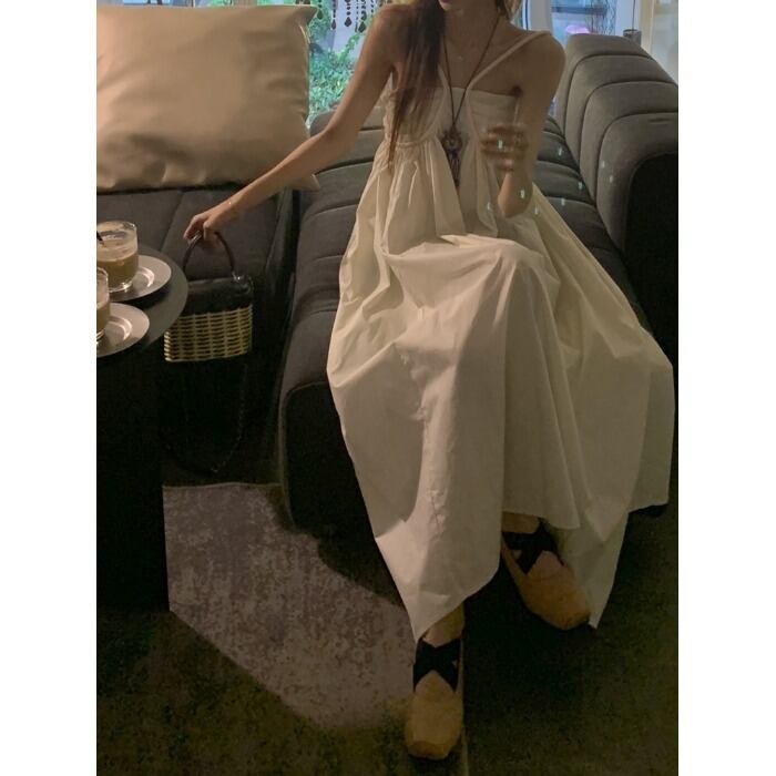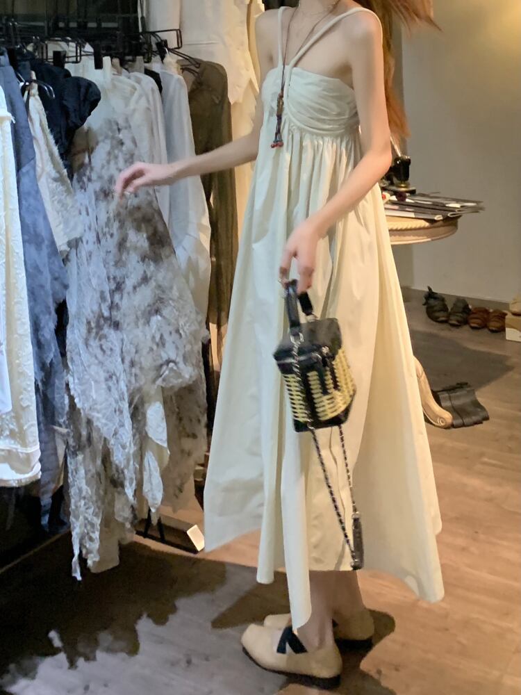 French design pleated suspender dress women's summer 2022 new chic waist and thin mid-length skirt プリーツ サマー 夏物 スカート 0921962284697899