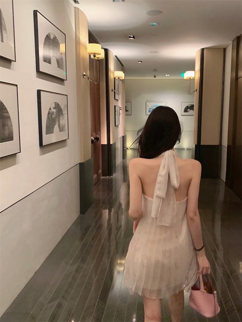 -quality floral halter dress women's summer 2022 new French design pleated waist A-line skirt プリーツ サマー 夏物 花柄 スカート Aライン 0921980116457755
