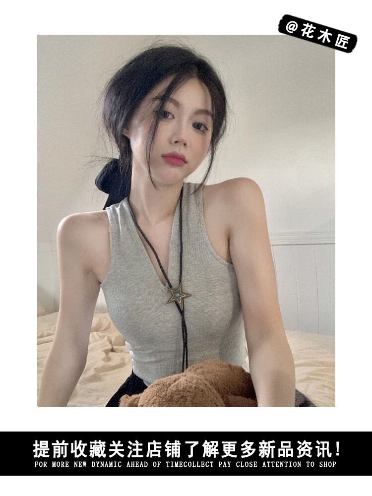 Sexy V-neck gray vest women's inner wear summer 2022 new slim fit and thin chic short top ショート サマー 夏物 Vネック スリム 0921932979834519
