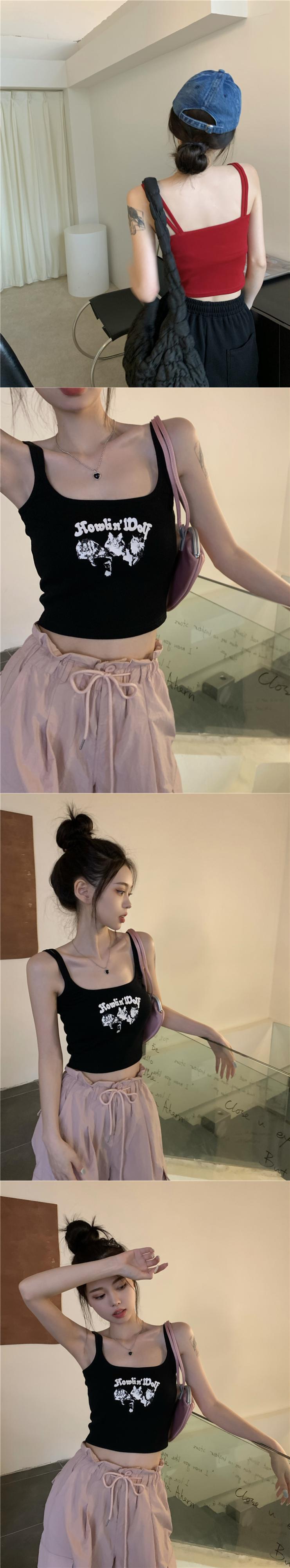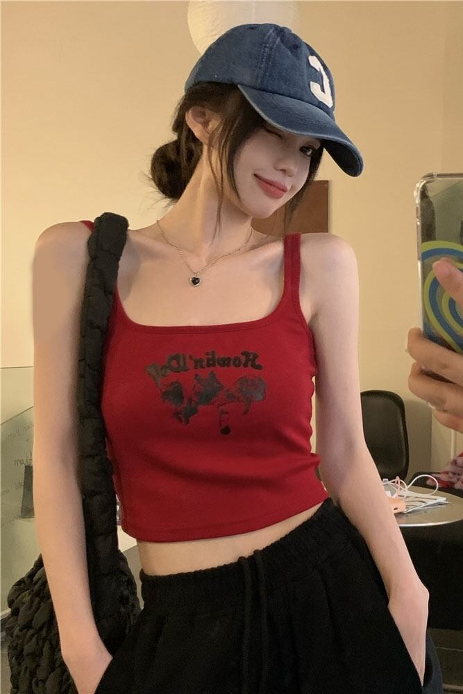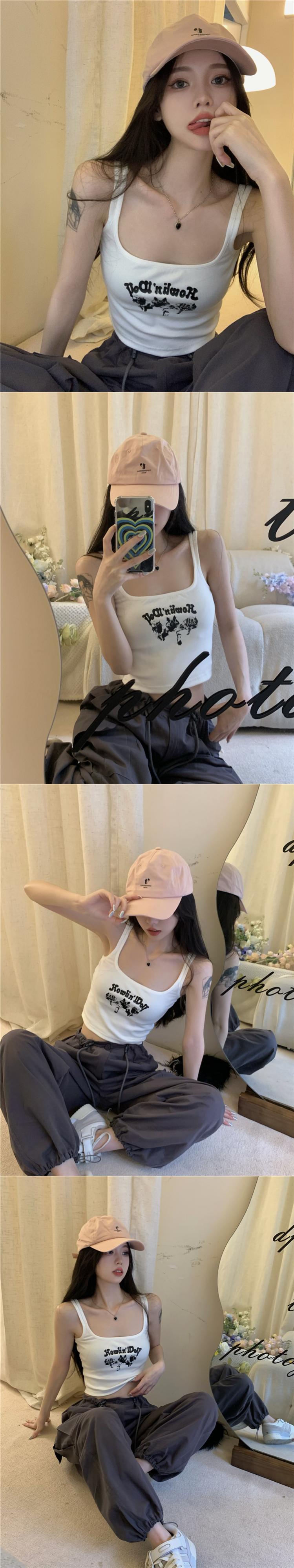 Hot style contrast color print camisole women's summer 2022 new sleeveless vest slim short top ショート サマー 夏物 ノースリーブ スリム 0921986524850289