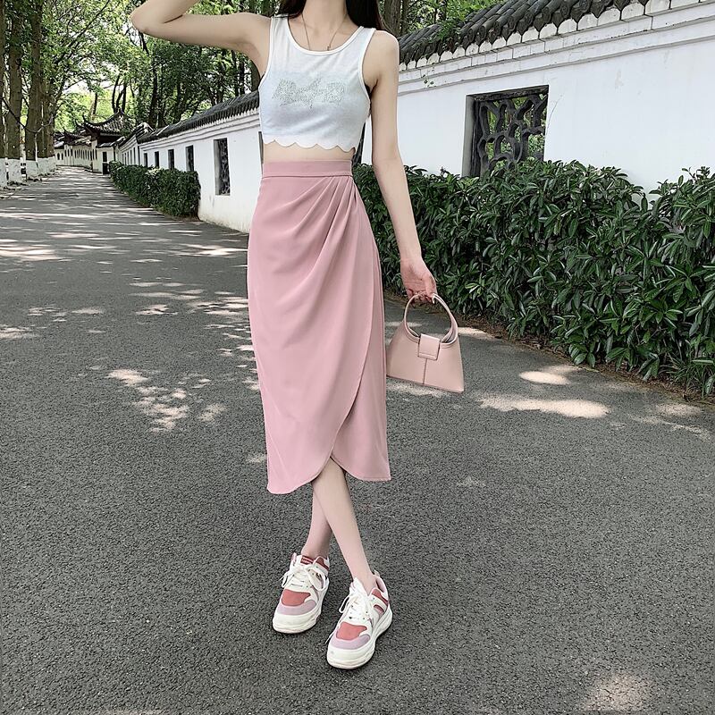 -quality black A-line skirt women's summer 2022 new pleated high waist slim mid-length hip skirt ハイウェスト ブラック プリーツ サマー 夏物 スカート Aライン スリム 0921991513897164