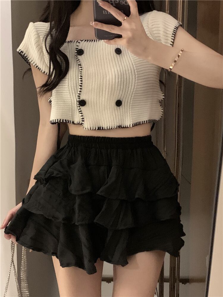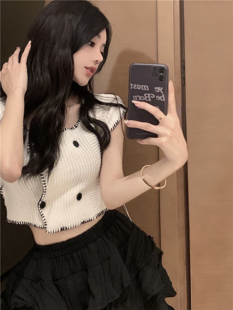 sense double-breasted short-sleeved knitted cardigan women's summer 2022 new pure desire style slim-fitting crop top カーディガン サマー 夏物 ピュア 0921923628980040