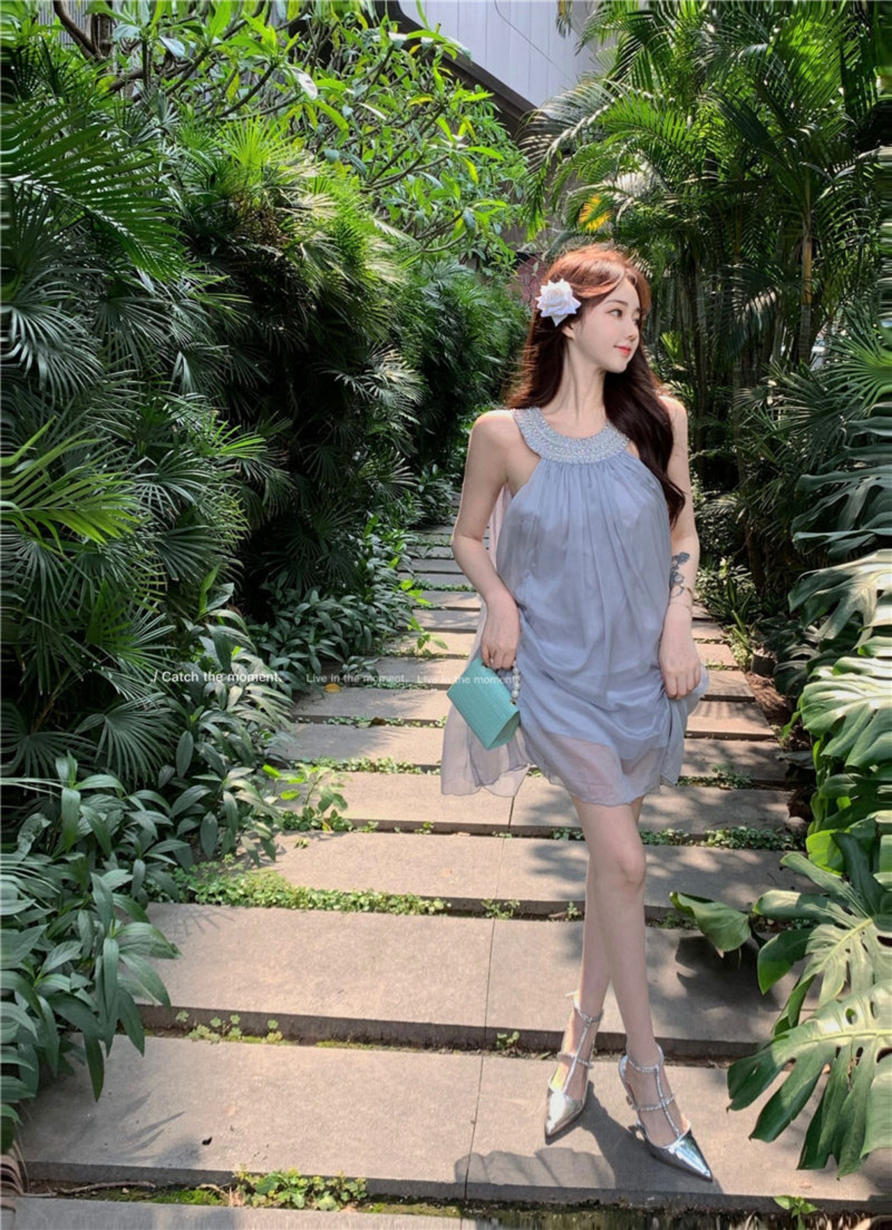 French heavy industry temperament halter dress women's summer 2022 new design pleated loose and thin skirt trendy プリーツ サマー 夏物 スカート 0921998628789524