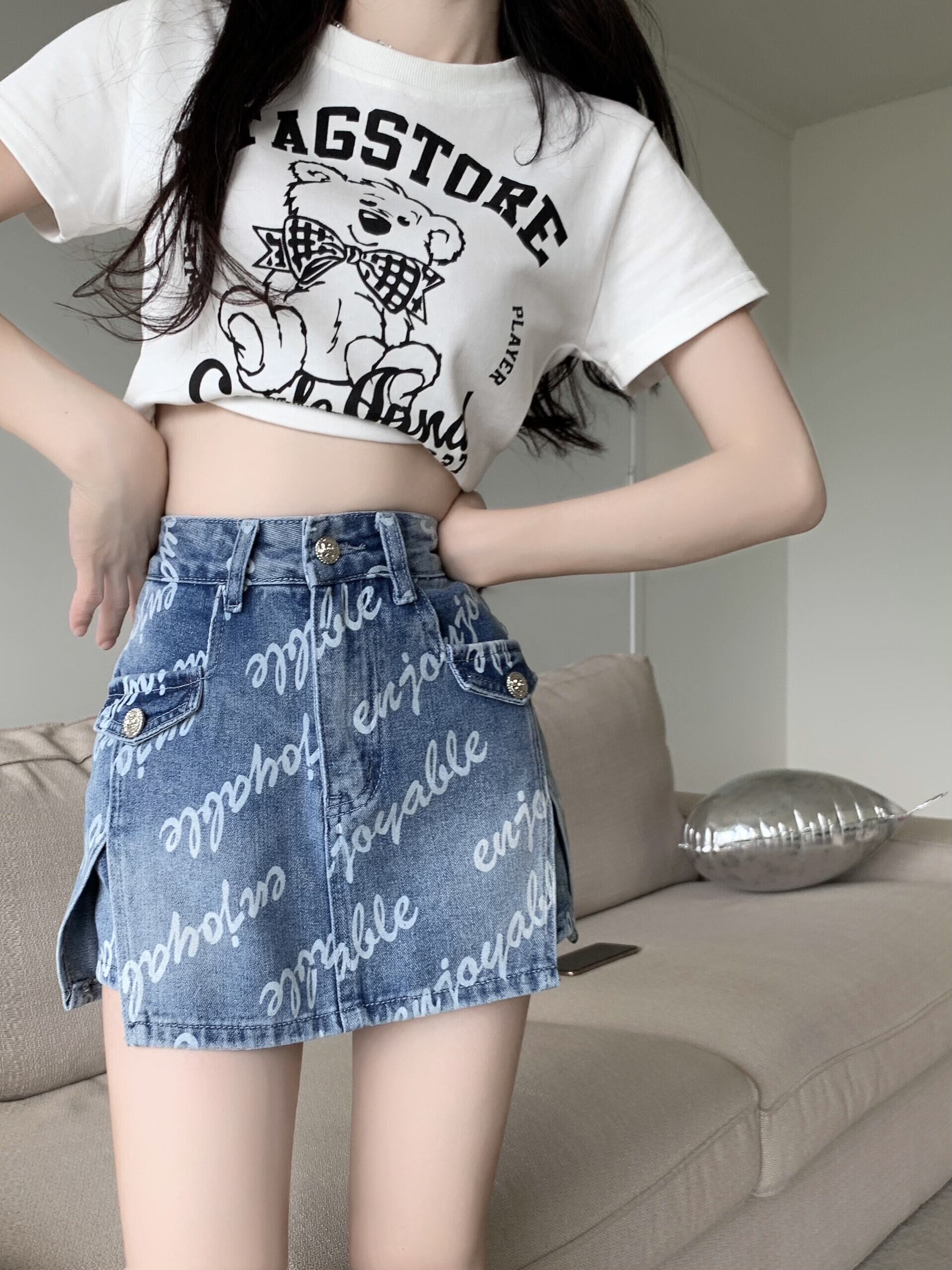 Spice Girls Alphabet Print Denim Skirt Women's Summer 2022 Retro Waist Thin Short Skirt ショート レトロ サマー 夏物 スカート 0921954416356708
