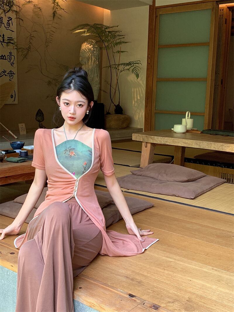 Chinese style mid-length cardigan short-sleeved T-shirt women's summer 2022 new retro temperament slim top ins レトロ カーディガン サマー 夏物 スリム Tシャツ 0921923205047046