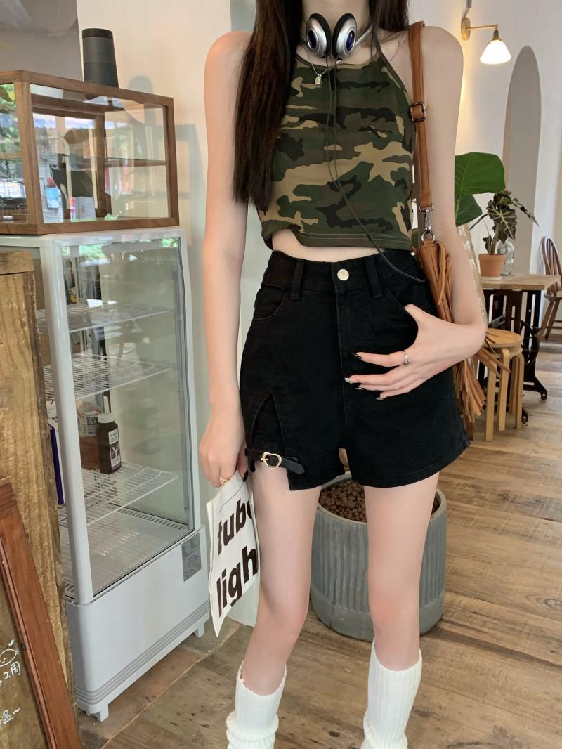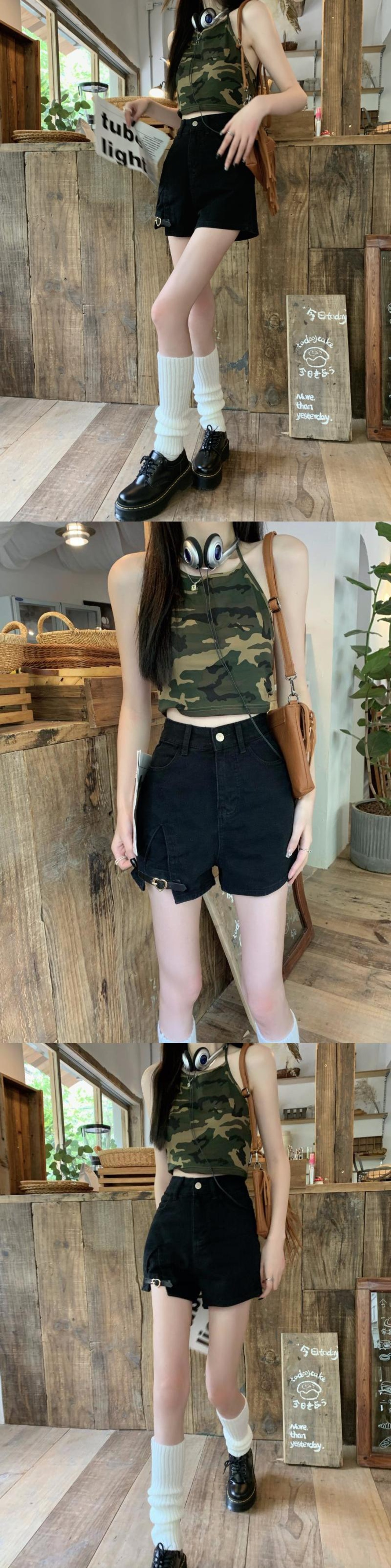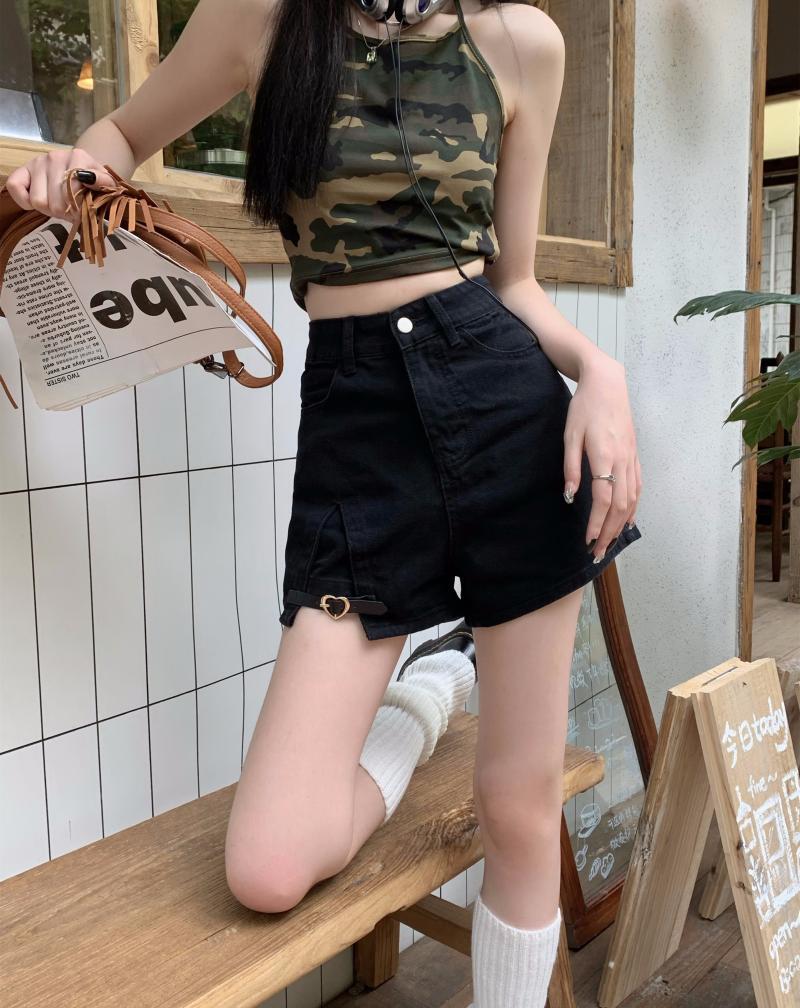 Sweet Spice Girl Love Buckle Waist Denim Shorts Women's Summer 2022 All-match Loose A-Line Wide Leg Pants Trendy 大人ガーリー スウィート キュート カジュアル サマー 夏物 ショーツ ブルマー Aライン ワイドレッグ ワイドパンツ 0921965476038323