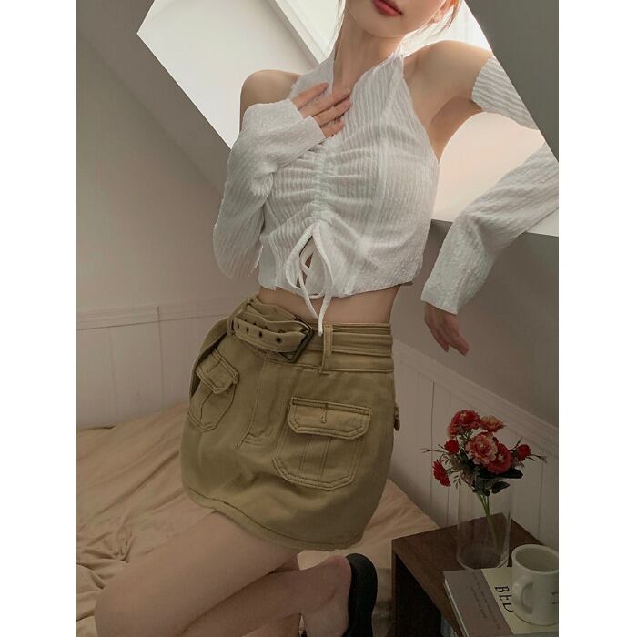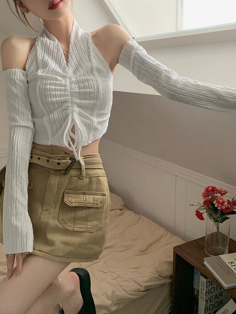 sense strapless black halter vest women's summer 2022 new chic drawstring temperament short top ショート ブラック サマー 夏物 0921924387093014
