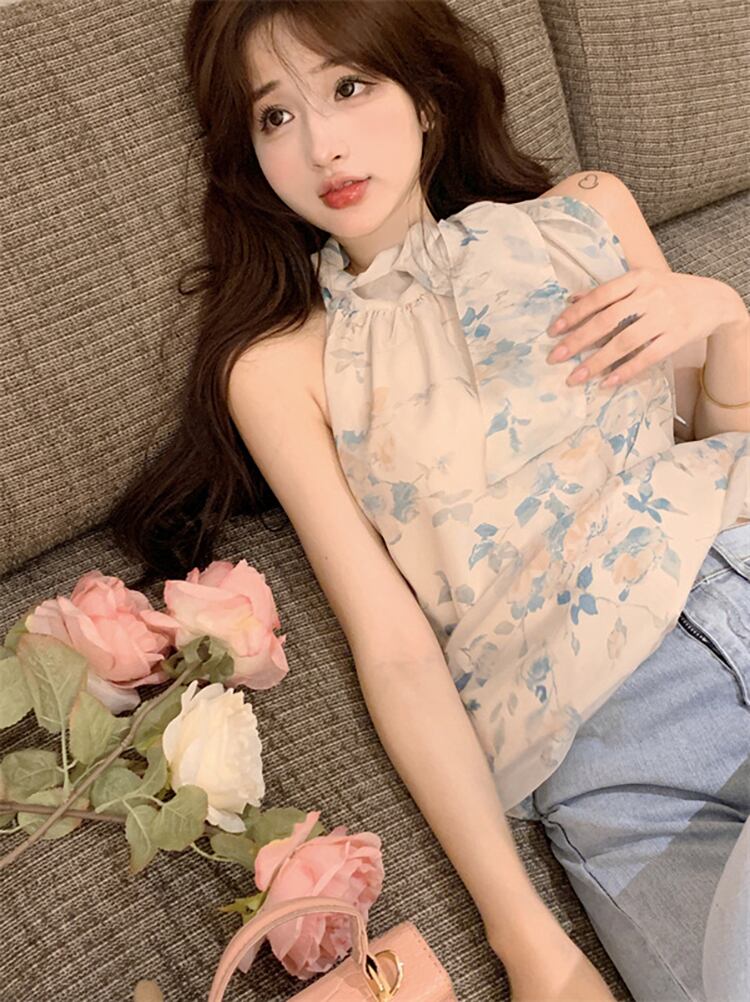 Pure lust style temperament strapless chiffon shirt women's summer 2022 new design fairy sweet and thin top シフォン 大人ガーリー スウィート キュート カジュアル サマー 夏物 0921983216332802