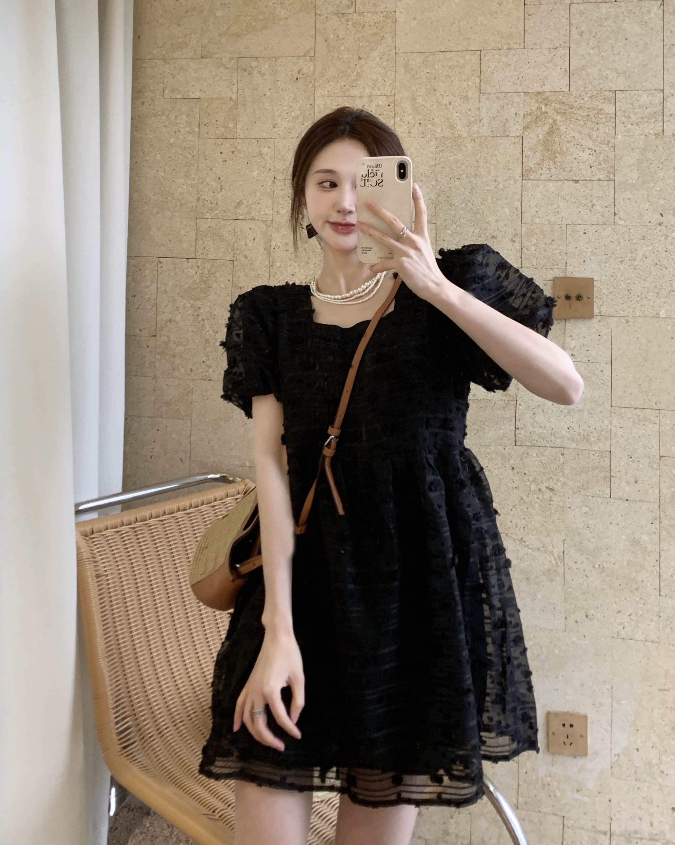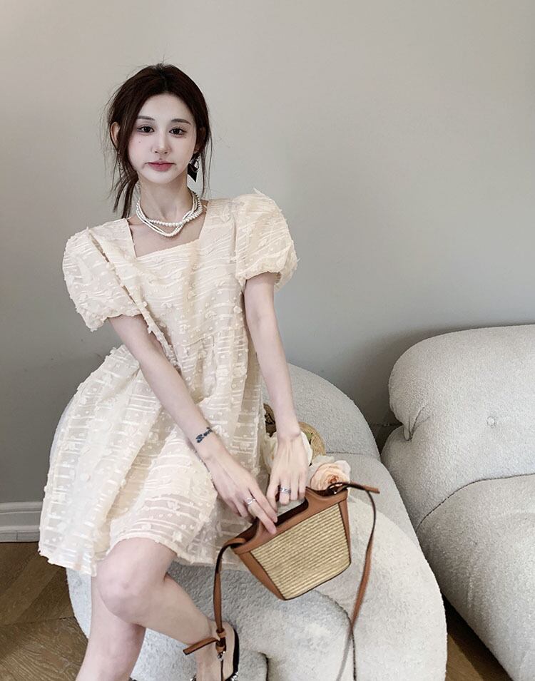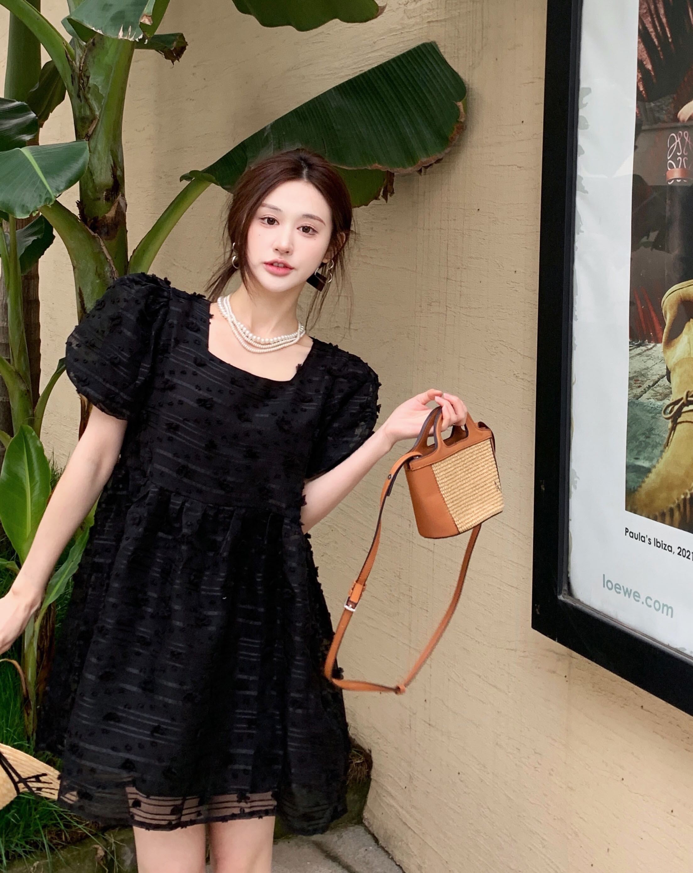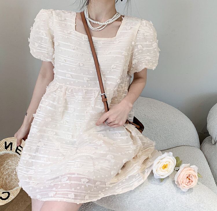 French gentle wind puff sleeve dress female summer 2022 new chic three-dimensional flower loose a-line skirt サマー 夏物 スカート Aライン フラワーデザイン 0921974585727674