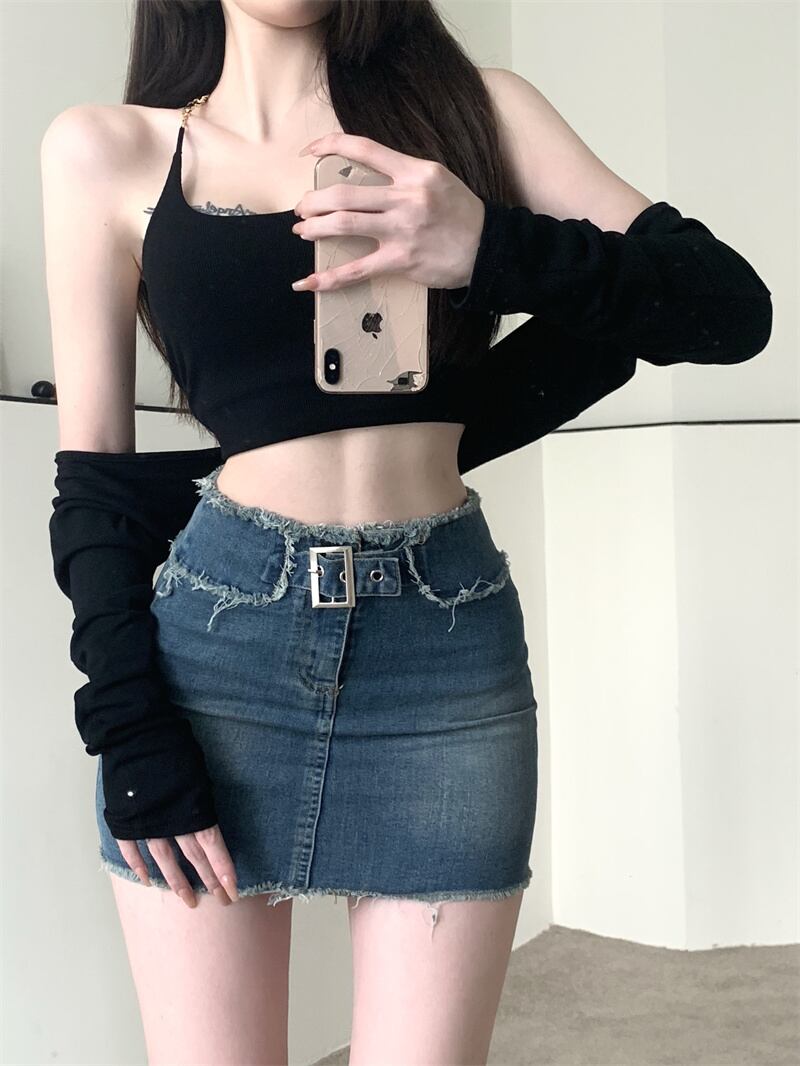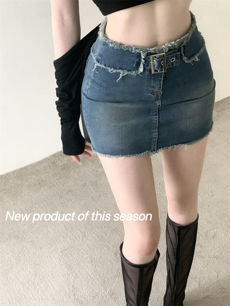 Hot frayed denim skirt women's summer 2022 new design sense small tall waist thin bag hip skirt サマー 夏物 スカート 0921940522810649