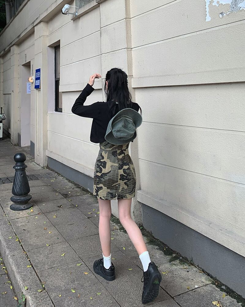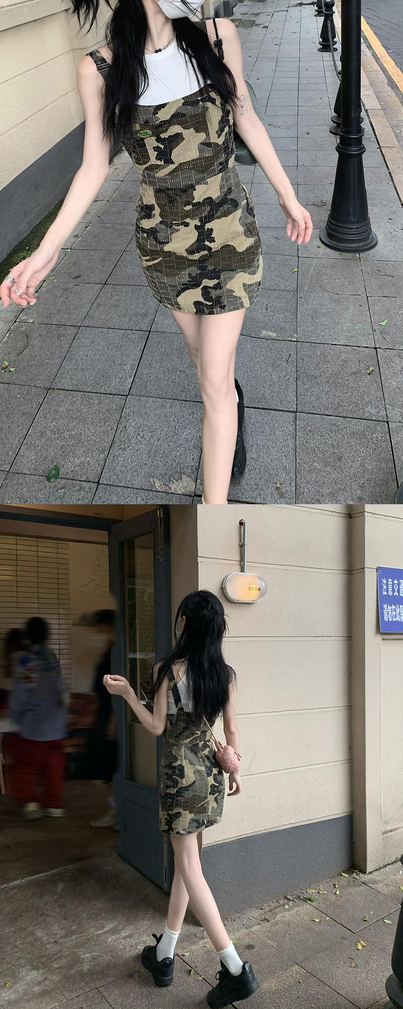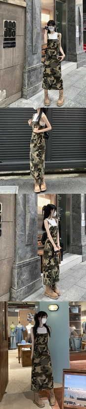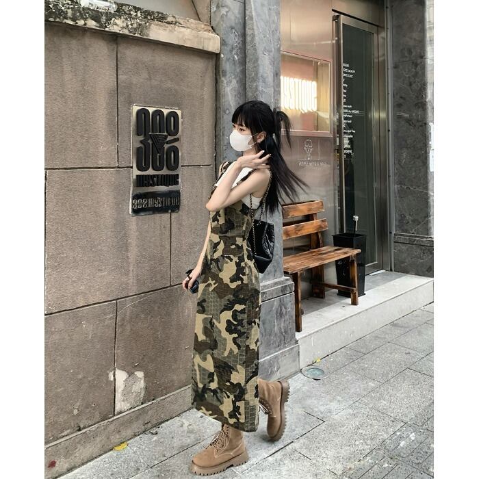 Hot chic denim camouflage strap dress female summer 2022 new retro niche waist A-line skirt tide レトロ サマー 夏物 スカート Aライン 0921914704413978