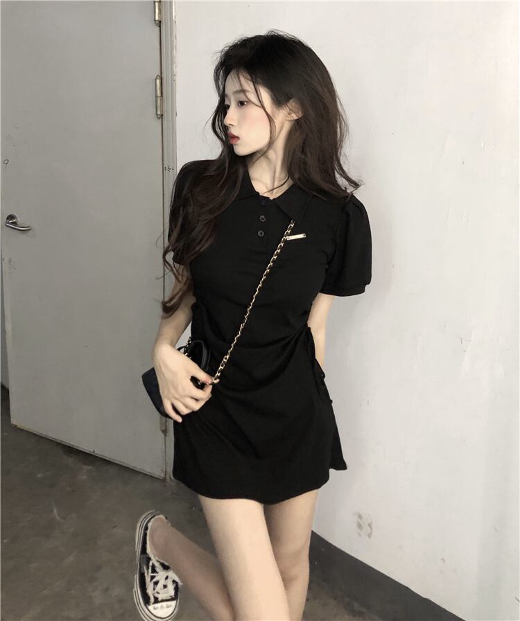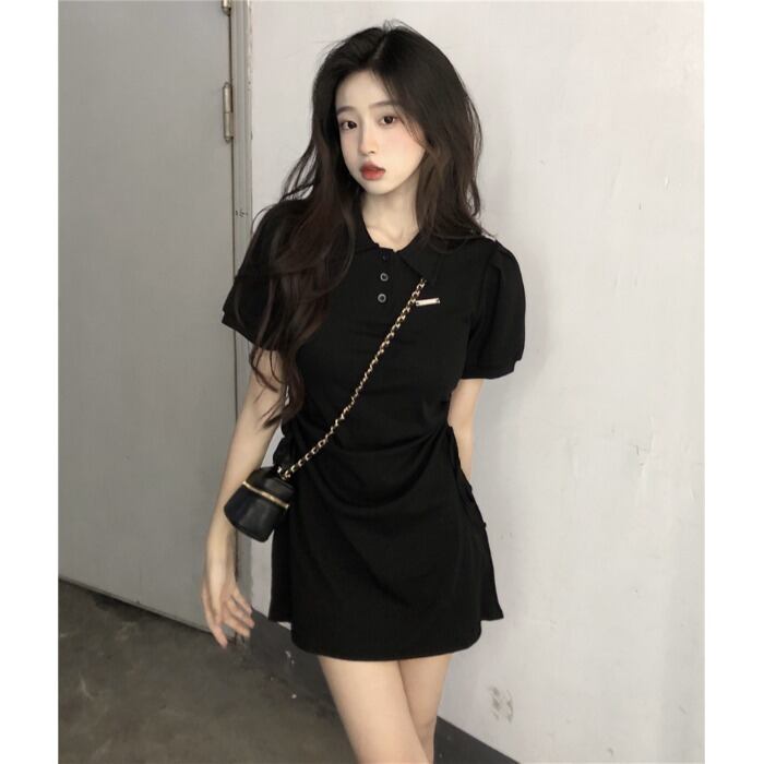 Pure Desire Polo Collar Dress Women's Summer 2022 Waist Drawstring Sweet Spicy Thin Skirt 大人ガーリー スウィート キュート カジュアル サマー 夏物 スカート 0921951961143735