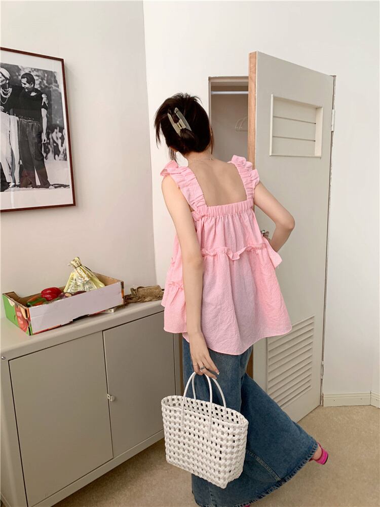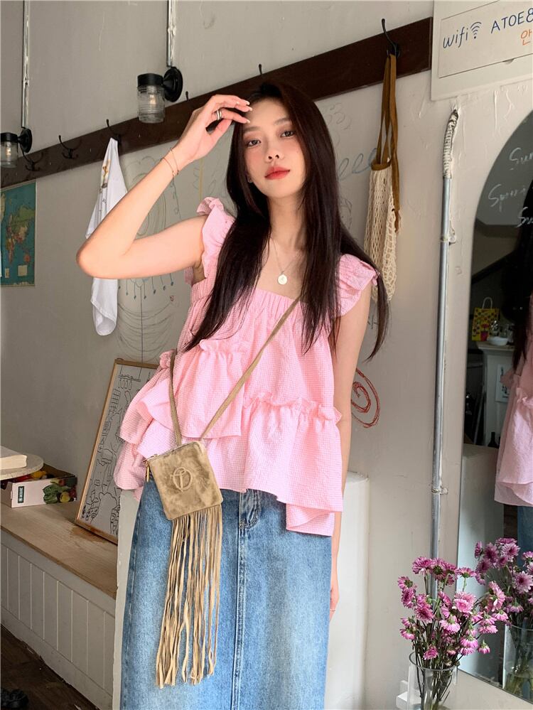 style small flying sleeves design sense fungus edge camisole women's summer 2022 new niche self-cultivation tops サマー 夏物 0921955696658068