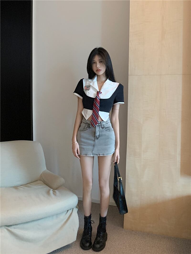 sense irregular short-sleeved white shirt women's summer 2022 new chic temperament short top trend ショート ホワイト サマー 夏物 0921928964132600