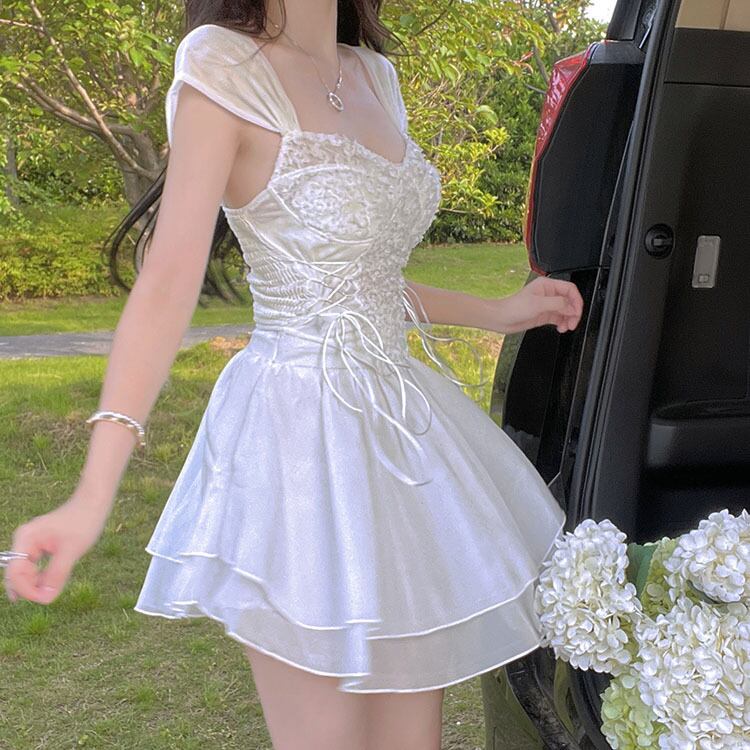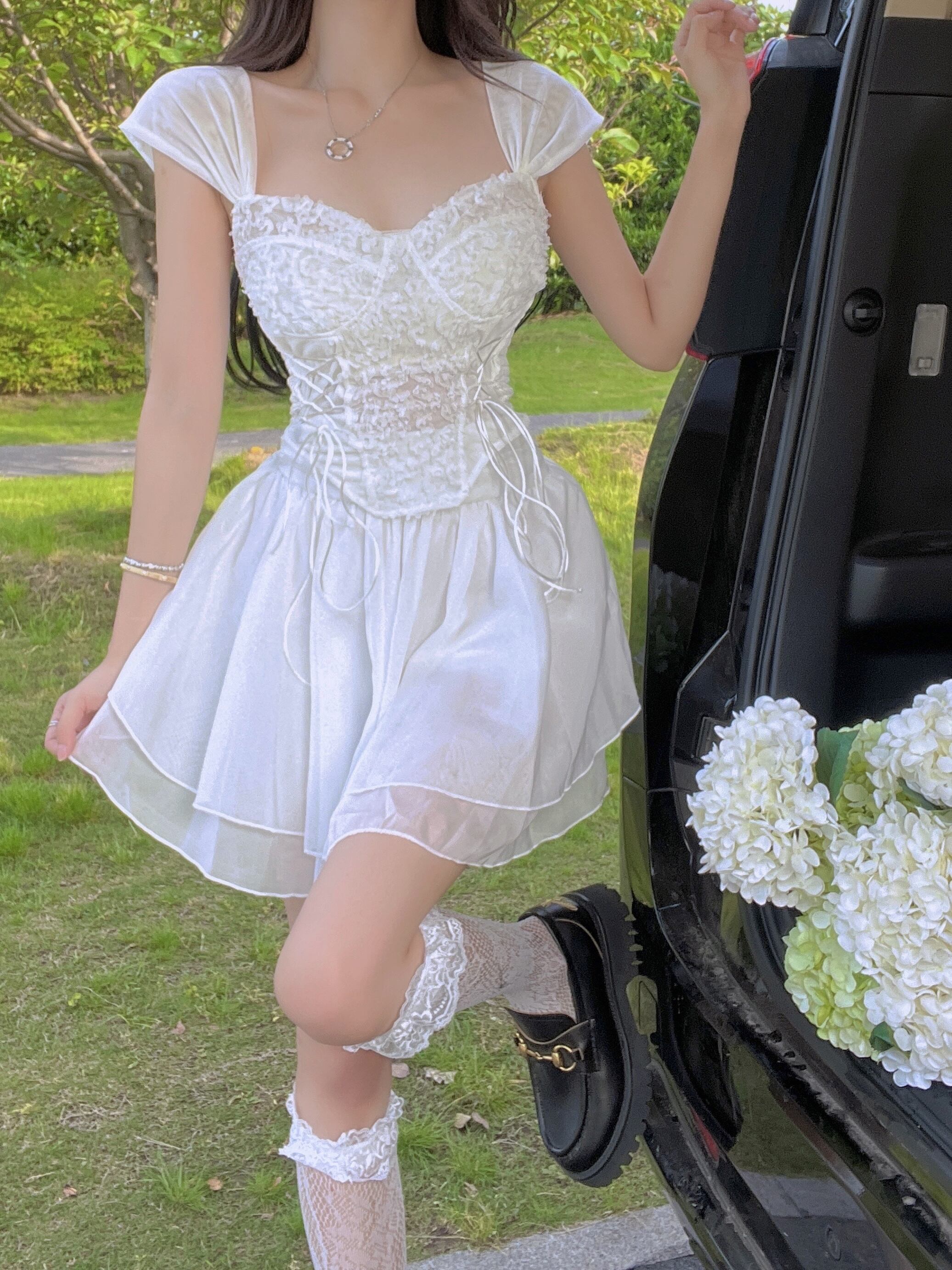 色:ホワイトトップsinglepiece,ワンpieceofピンクトップ,ホワイトgauzeスカート,ピンクyarnスカートsinglepiece