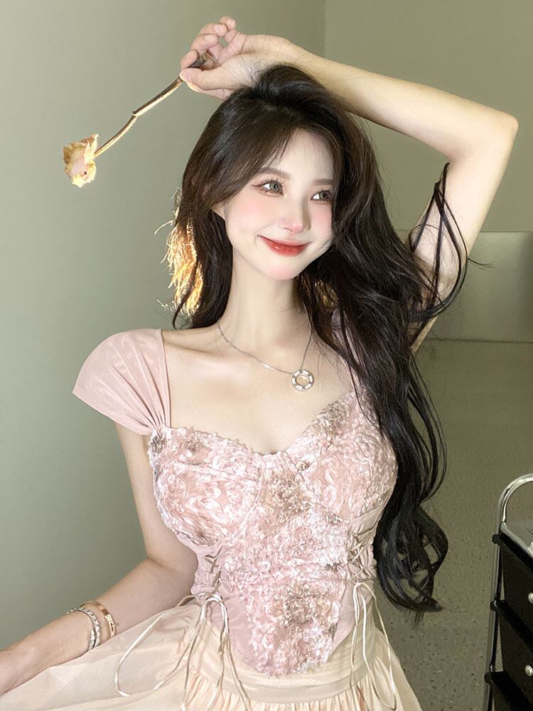 Pure Desire Suit Women's Summer 2022 Western Lace Top Cake Skirt Net Red Two-piece Set レッド レース サマー 夏物 スカート 0921910336674910