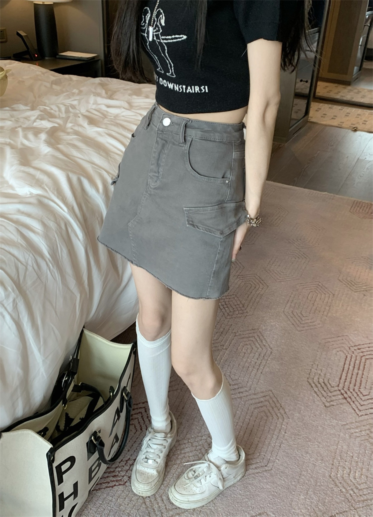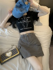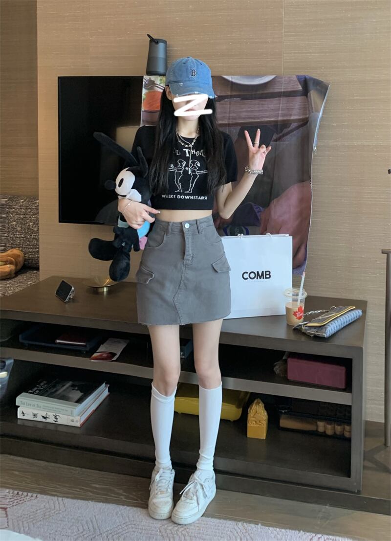 Hot gray tooling skirt women's summer 2022 new eign style small tall waist thin A-line short skirt trend ショート サマー 夏物 スカート Aライン 0921932752388651